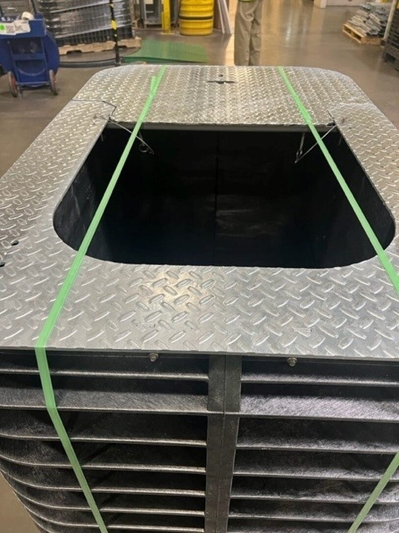 These lids were arriving in groups of 100 with several unusable due to the warping during the hot-dip galvanizing process. Here’s where the experts come in. JBC Steel Products a steel fabricator in Dallas, Texas was hired locally to provide the lids for Channell. JBC plasma cuts the lids and in turn hired EFAB, a steel fabricator in Alvarado, Texas to weld up the lids. Experience is often critical and in this case, EFAB knew that a simple weld was not going to allow the lids to remain warp free and tested 3 different types of welding techniques prior to mass production. With the galvanizer's in house knowledge and EFAB’s willingness to work with with the galvanizer, a technique was discovered that alleviated all of the warping that caused issues with previous orders. With properly fitted lids, the fiber-optic connections below will be protected for years to come.
