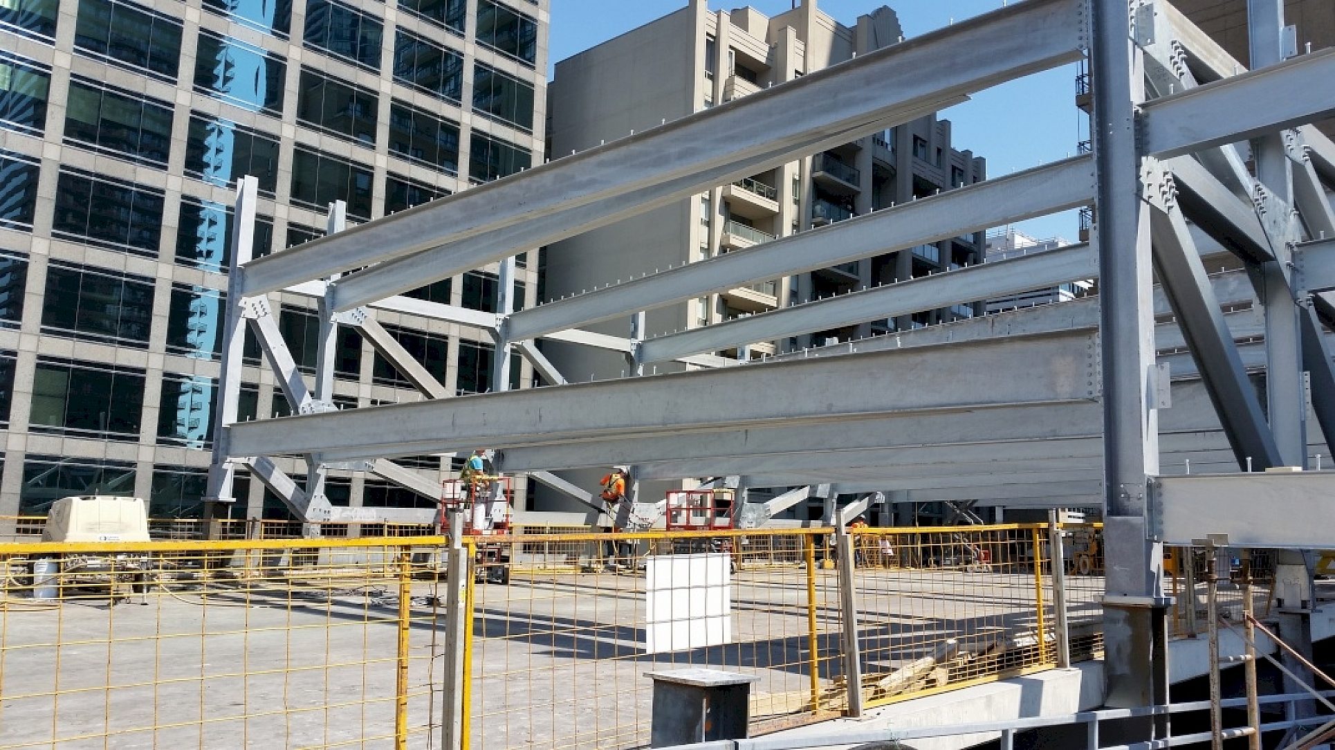 Situated next door to the busiest subway station in all of Canada they knew every extra spot would be quickly filled but this location presented a challenge for expansion because the garage actually straddles a subway line that passes directly under the existing structure. To prevent the risk of damage to the subway tubes a strict weight limit was imposed on the project by Transit Authority engineers. Fortunately the light weight of steel compared to concrete structure made this badly needed expansion possible. Light, strong and durable galvanized steel also can be erected much faster than concrete structures minimizing cost and lost parking revenues. And the zinc will protect the steel against the corrosive road salts and high humidity the garage is exposed to several months a year.