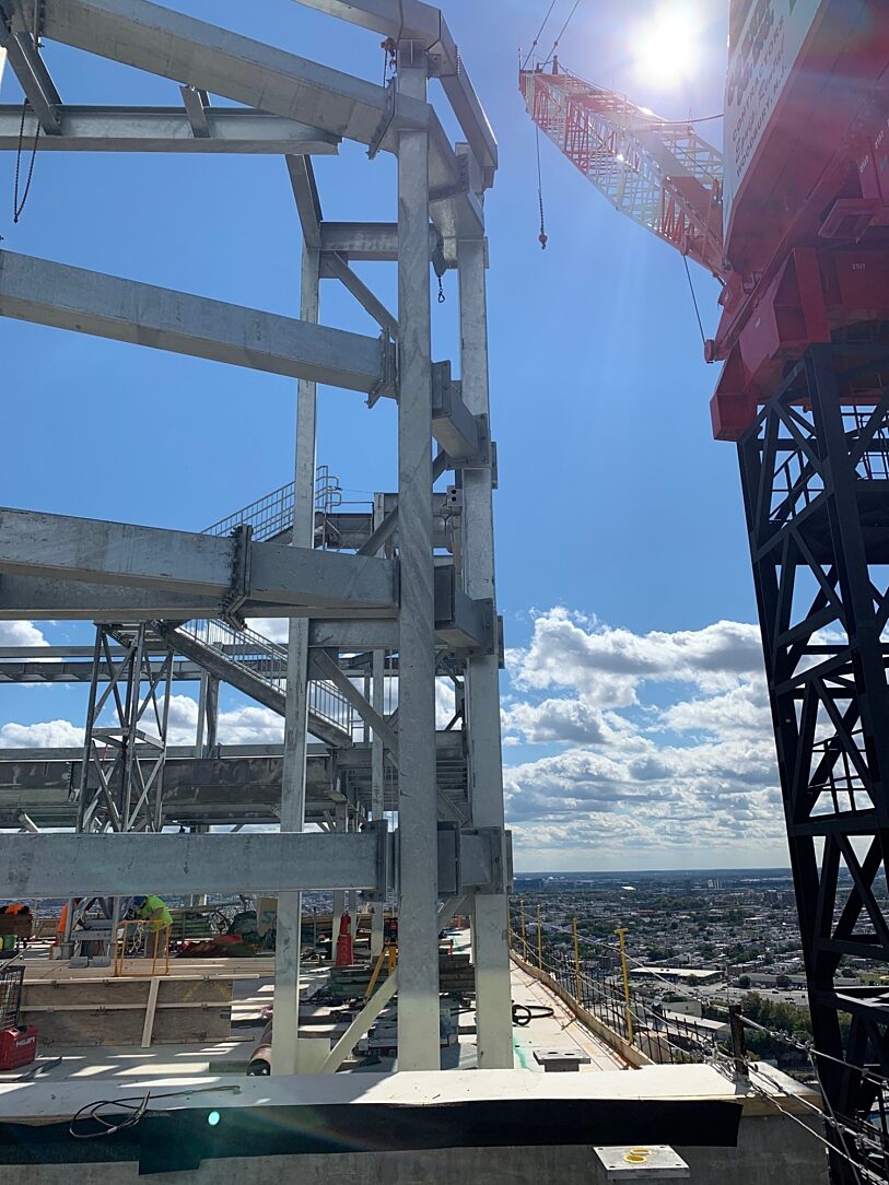 The steel used in The HUB for Clinical Collaboration expansion was fabricated in the Virginia and New Jersey plants of Banker Steel Company. The company fabricated and erected 9,000 tons of structural steel for Turner Construction on the project. The top floors of the The HUB for Clinical Collaboration is where you will find more than 550 tons of hot-dip galvanized steel members. This includes the enclosures for the rooftop mechanical equipment and a two story high screen wall. Hot-dip galvanizing was chosen for the corrosion performance and the longevity of the coating. Over the course of time this will minimize preventative maintenance and allow the steel framing to last for decades to come.