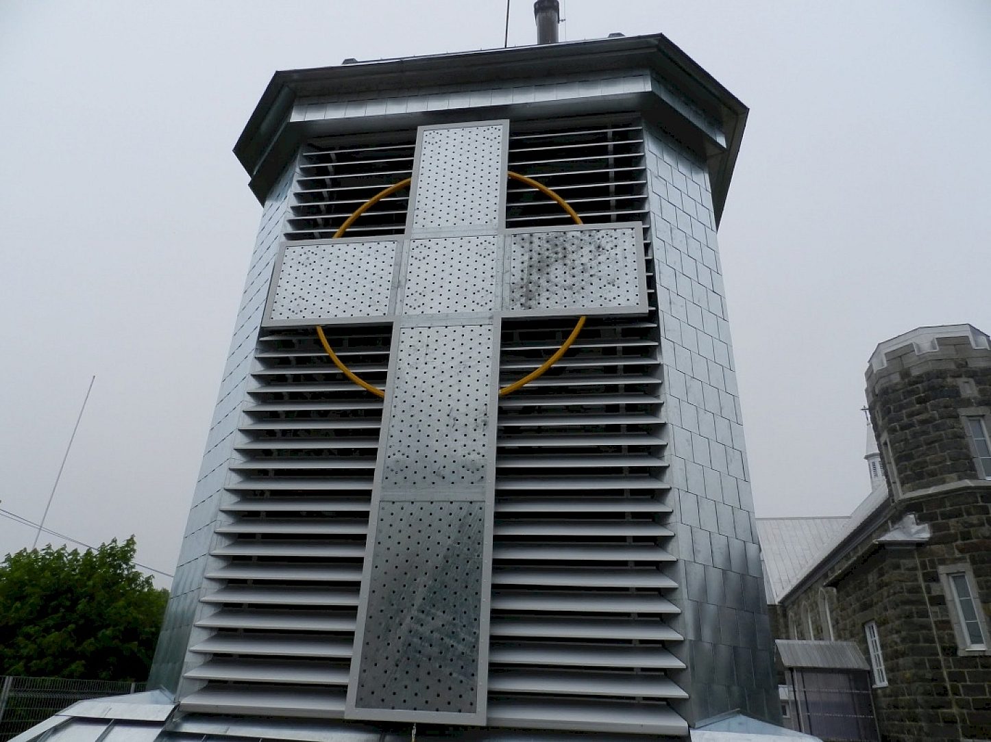 The need to respect the rich history and architecture of this religious building was a perfect match for galvanizing. Not just for the superior durability of galvanized steel but also for a beautiful aesthetic match. The natural color of aging galvanized steel meshes nicely with the traditional silver grey paint seen on almost all catholic churches in Quebec. The reality of todays economic limitations for parishes in Quebec made life-cycle cost a crucial point for their client. The difficult access to the steeple made periodic repainting a costly proposition and the long service life of hot-dip galvanizing was also very cost effective even if only initial cost was considered.