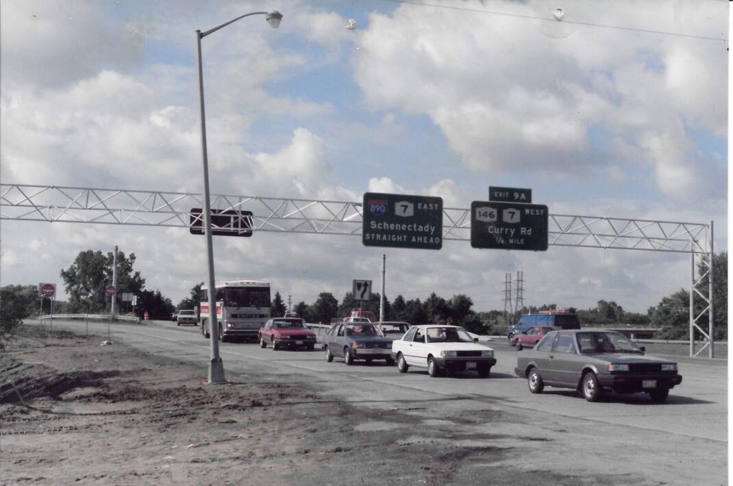There are many considerations when it comes to the design and choice of sign bridge structures. Longer spans and larger loads typically require truss style sign bridges. At this Sunnyside location, the span length installed is within the maximum span length allowed for a "monotube" style structure. Monotube sign bridges are often installed in congested corridors where there are a lot of other signs such as seen at this location. Monotube structures are also used to help reduce the amount of structure that will be in the way of the travelling public's view.