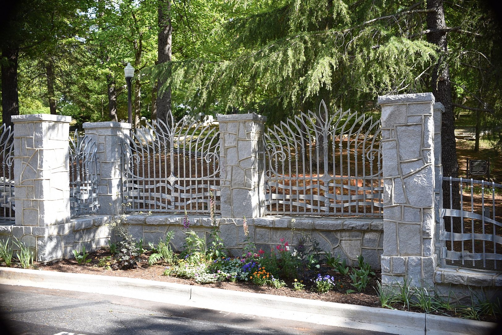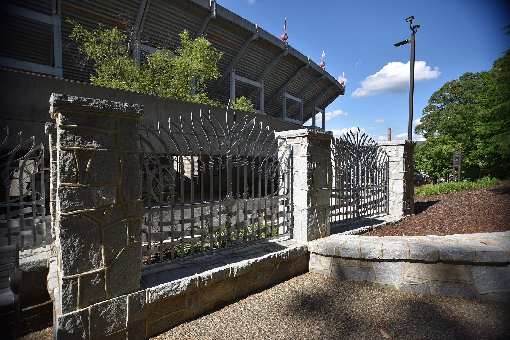 The Woodland Cemetery Gate Project is a distinguished addition to the historic grounds of Clemson University. Situated at the entrance to Woodland Cemetery and adjacent to the renowned Memorial Stadium, the gate showcases exceptional craftsmanship of Robert Thomas Iron Design while honoring the rich heritage of the university. Most importantly, it serves as a meaningful tribute to more than 500 unmarked graves within the cemetery, ensuring that those laid to rest are honored with dignity and remembrance. This project not only enhances the beauty of the campus but also stands as a lasting symbol of respect and remembrance.