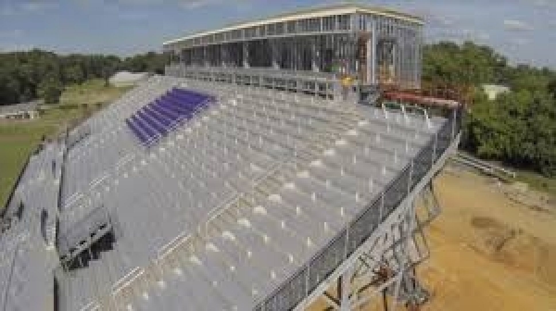 The new stadium is an impressive 192-ft. long, 110-ft. deep and 82-ft. tall, including the press box which measures nearly 3,500-sq.-ft.