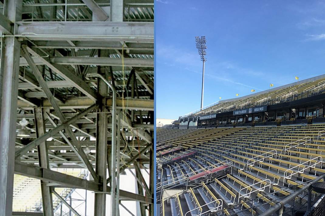 The engineer chose to use hot-dip galvanizing to protect over four million pounds of structural steel used as the stadiums core. In all, 53.5 tons of steel were hot-dip galvanized, including the four lighting tower structures, structural legs, support, and catwalks.