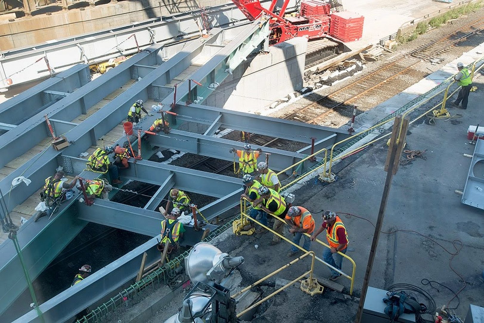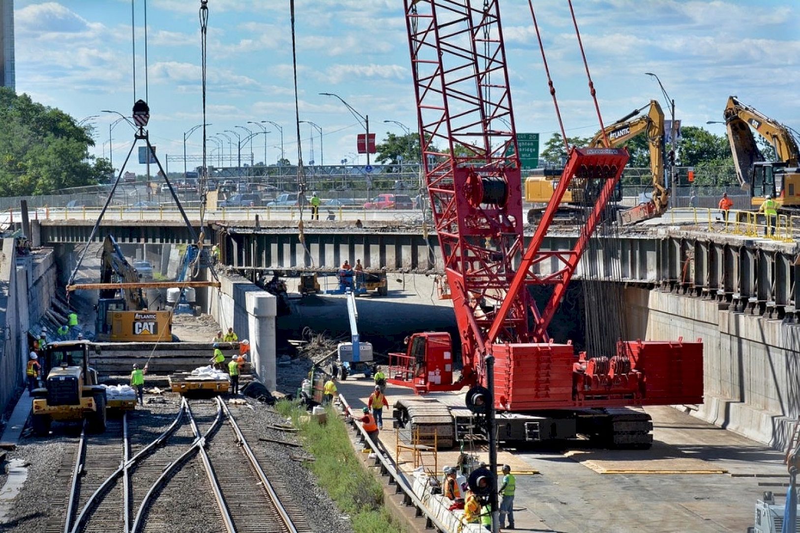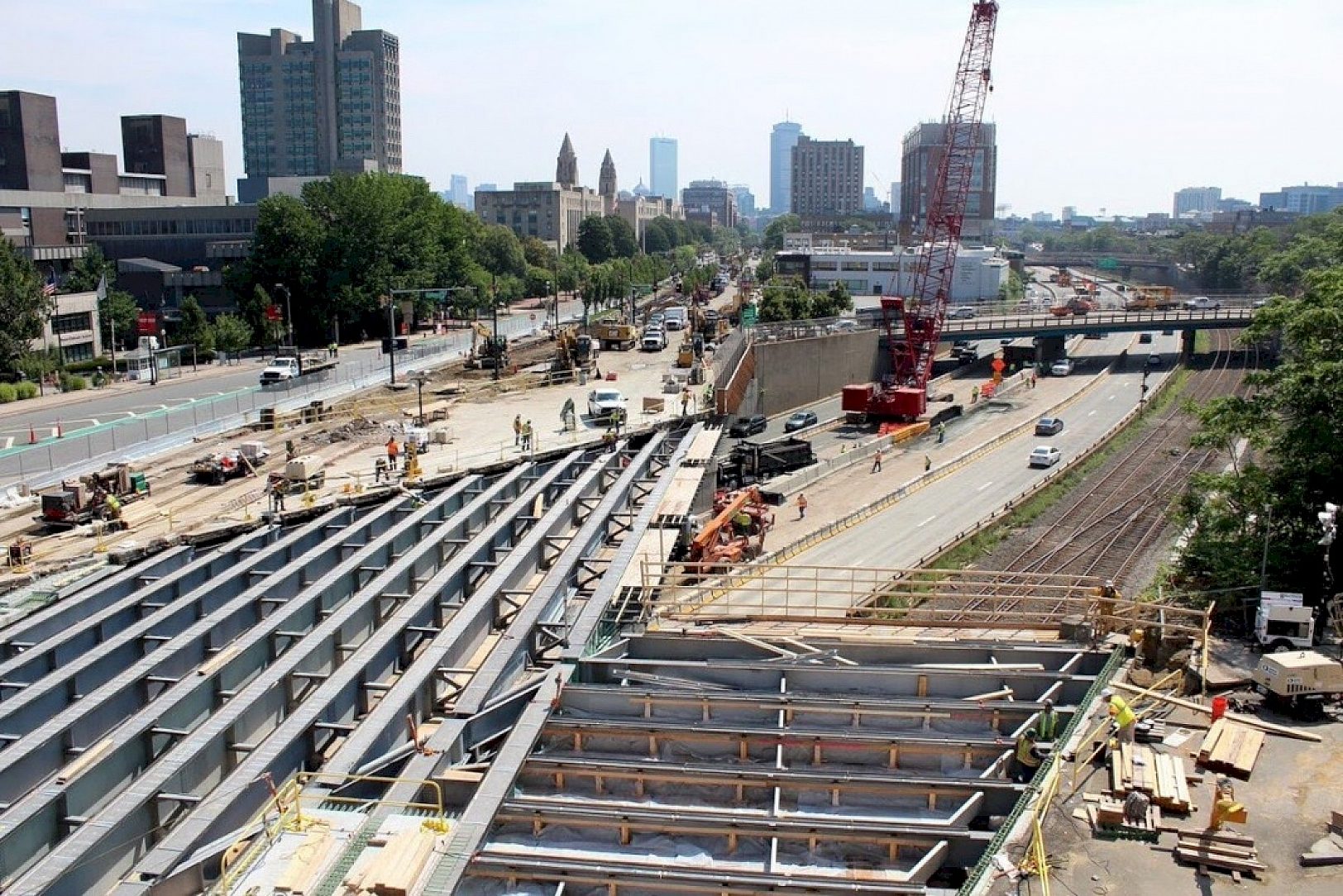 Conventional bridge replacement techniques would have extended construction four to five years and would have resulted in greater traffic and transit impacts. Because of the extremely high usage of the bridge, MassDOT employed multiple crews working on a 24/7 basis to remove and replace the existing bridge, while maintaining traffic flow on the Massachusetts Turnpike below with lane reductions. A major consideration was the ability of the various trades to provide the turnaround that was required.
