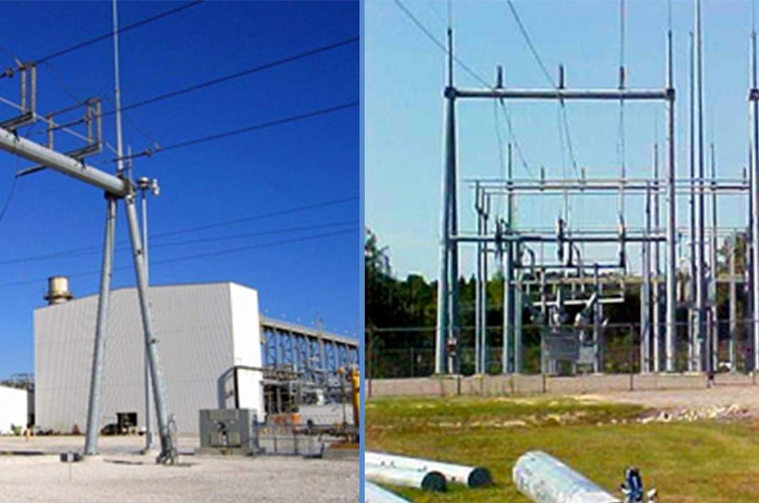 steel poles, bus supports, H frames, anchor bolts, knock down structural braces