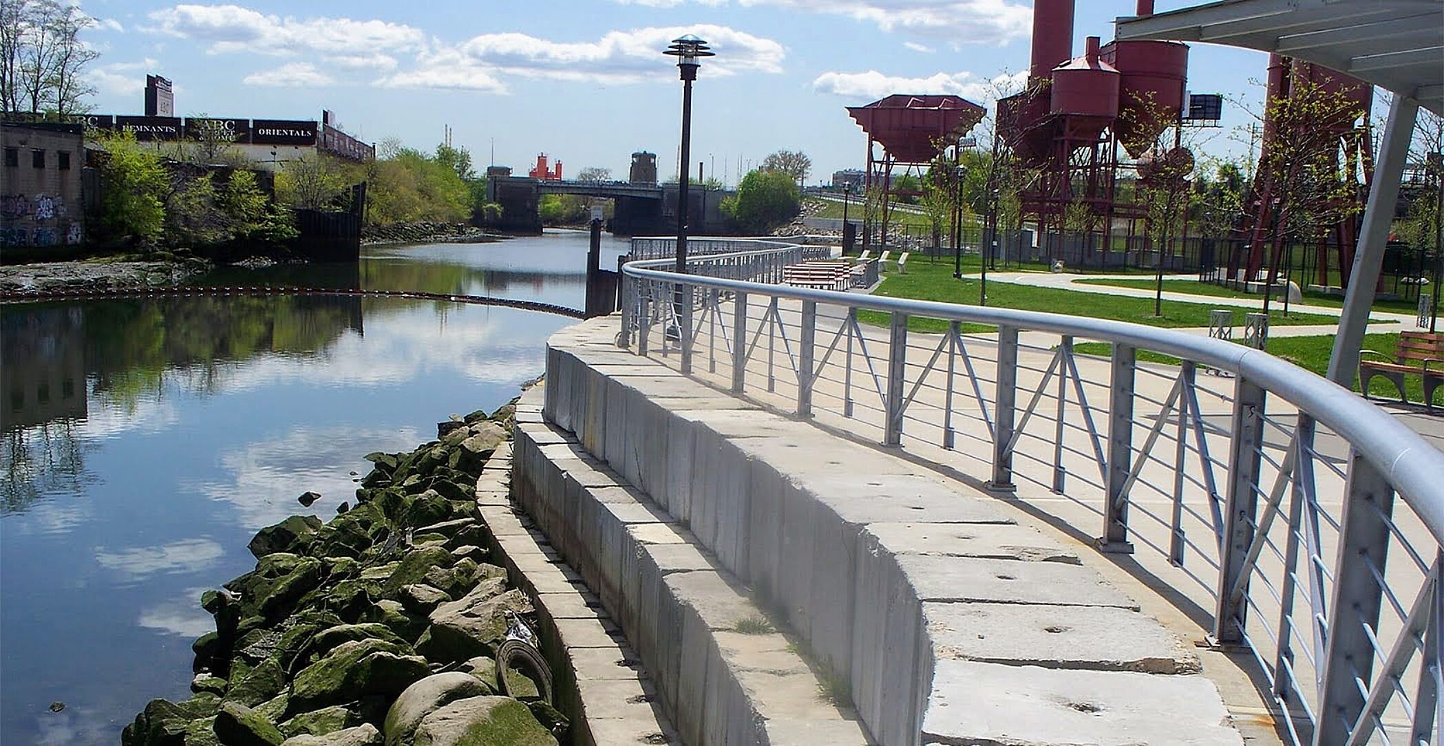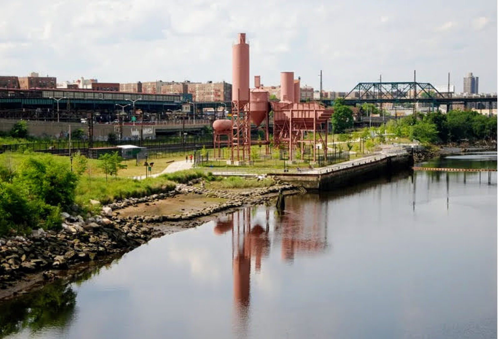 In 2009 a unique partnership between local community organizations and NYC Parks led to the transformation of an abandoned concrete plant into this waterfront park and link in the Bronx River Greenway. Concrete Plant Park, a major segment of the Bronx River Greenway, is seven (7) acres in size. The park is situated on the Hunt’s Point Peninsula along the western shore of the Bronx River. It was home to a working concrete batch mix plant manufacturing cement from 1945 to 1987.