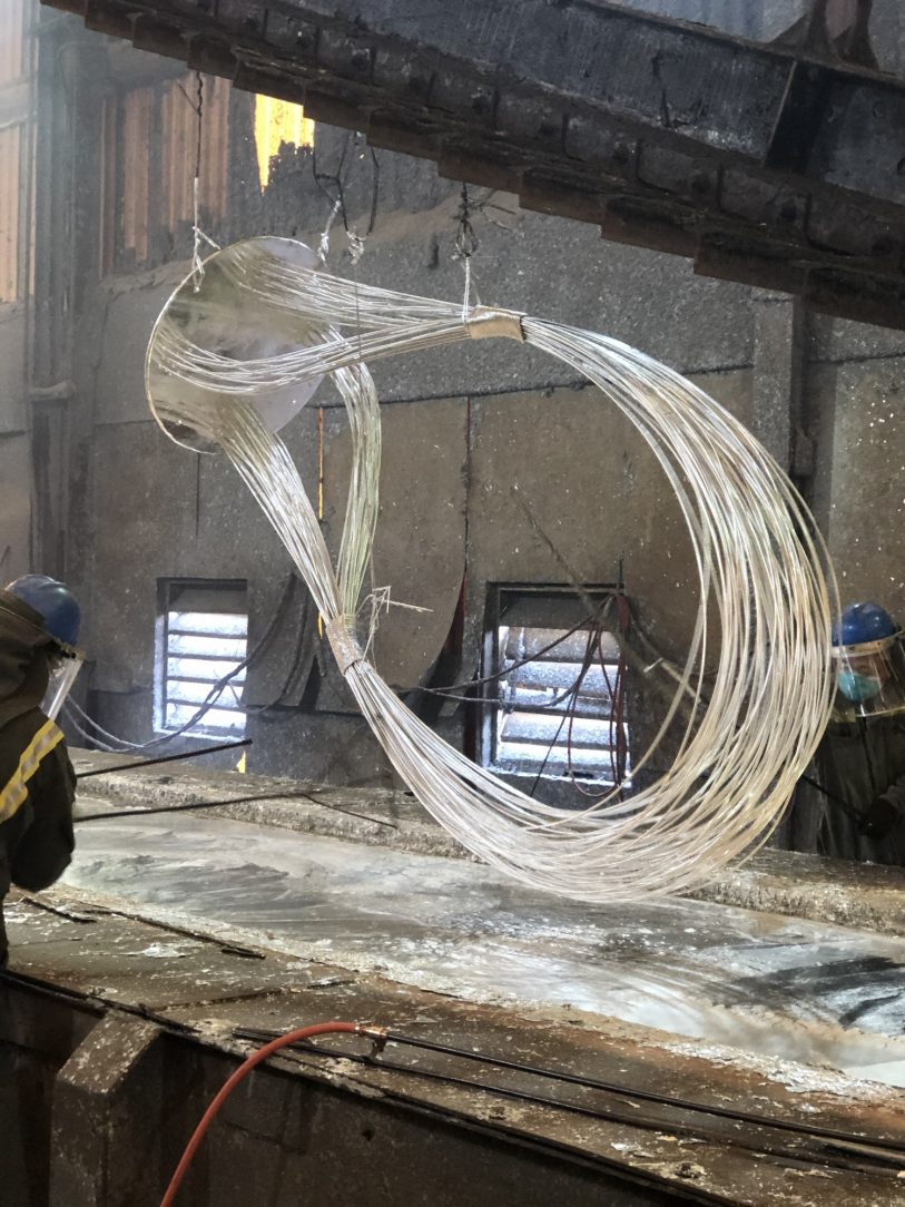 This piece evokes an impressive presence, emphasizing Nature’s grandeur. In contrast, the industrial, galvanized materials bound tightly together reflect the rapidity of mass-production and overconsumption of natural resources – humans’ tight grasp on a wild force.
