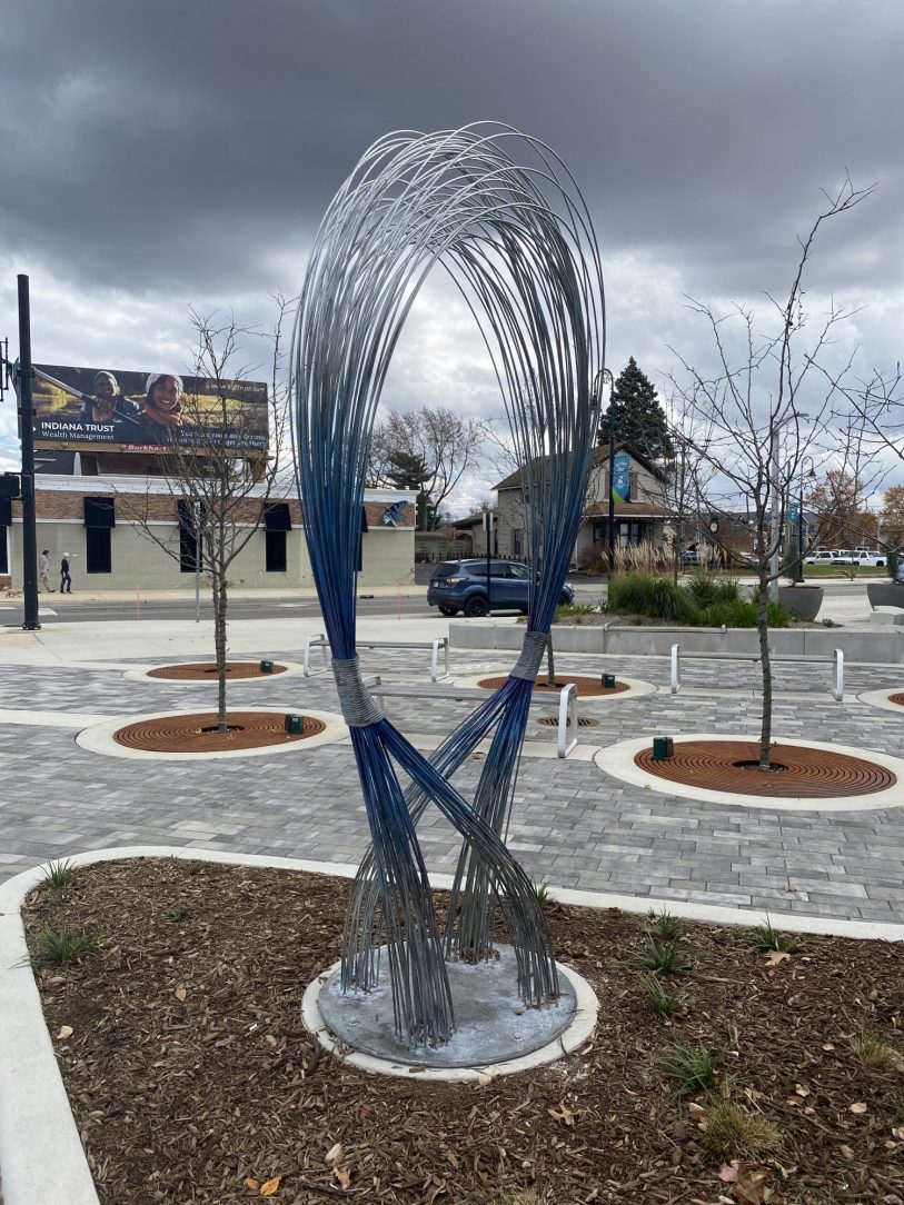 Huts has an innate talent for creating and merging nature-inspired subjects with thought-provoking, industrial undertones. A challenge for Huts' vision was to create a durable yet moveable sculpture that would endure the Hot Dip Galvanizing process, as well as the extreme weather changes in Northern Indiana. His unique design, and knowledge of working with steel was put to the test as he took his art from conceptualization through design and manufacturing, to completion with Hot Dip Galvanizing. Due to the ornate design, the galvanizer had to take extra precautions to minimize distortion. Visitors to Howard Park will be able to observe and learn about the endless uses for Hot Dip Galvanizing not only as corrosion protection, but also as an alternative to other artistic media. Ode To A Cottonwood draws inspiration from the cottonwood trees growing along the banks of the majestic St. Joseph River. Cottonwood trees can be easily identified in a grove of trees by their deeply fissured bark and the way their leaves uniquely shimmer in the wind. This piece evokes many emotions from all who view it, and is a very impressive presence emphasizing Nature’s grandeur fusing with industrialization to create a symbiotic relationship. In contrast, the Industrial, galvanized materials bound tightly together reflect the rapidity of mass-production and overconsumption of natural resources – humans’ tight grasp on a wild force.