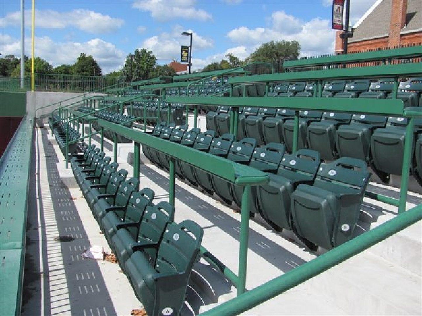 The South Bend Silverhawks had only 12 days between the regular season games and the all star break. That was the time allowed to install the new railings and drink rail in Coveleski Stadium. Still they wanted the corrosion protection of hot-dip galvanizing (HDG) to be included. With constant use and acidic drinks that will inevitably spill on the drink rail HDG was the only choice for corrosion protection. The smooth galvanized surface top-coated with paint for aesthetics made a perfect pair.
