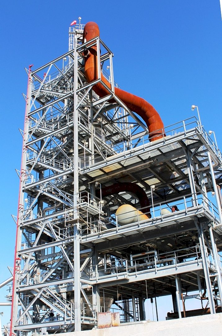 Additionally, the vast size of the plant and its intricate lattice structure would present a surface preparation nightmare for repainting. To further illustrate the extent of maintenance costs associated with paint, Martin cited the vast preparation and time required to paint a single, vertical pipe section to meet safety requirements. Scaffolding literally engulfed the plant, and operations were halted while the pipe was painted. In addition to the direct cost of painting, overwhelming indirect costs would be incurred due to shutdown time and loss of production if the entire facility were painted. Choosing a HDG coating virtually eliminated any concern regarding maintenance.