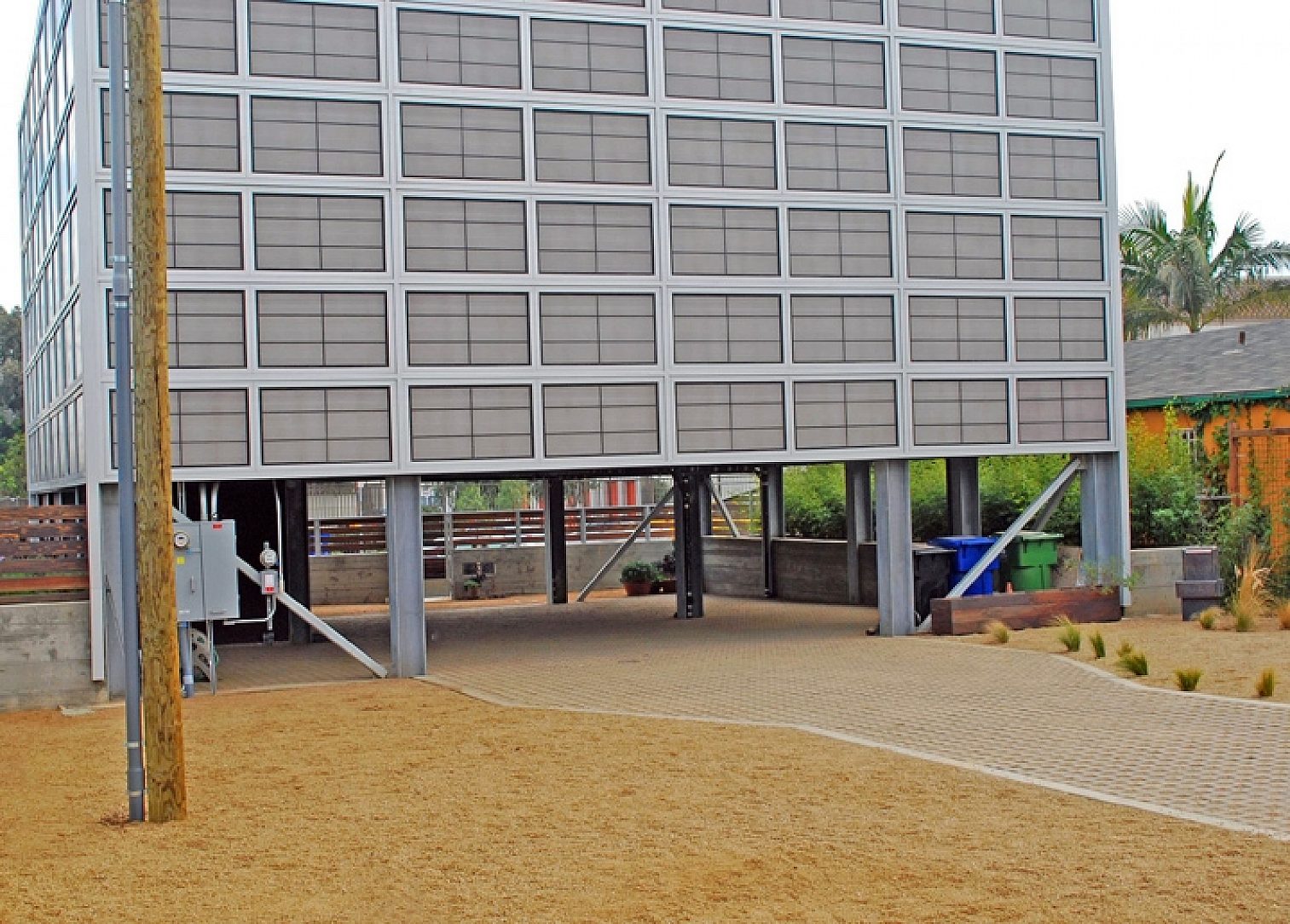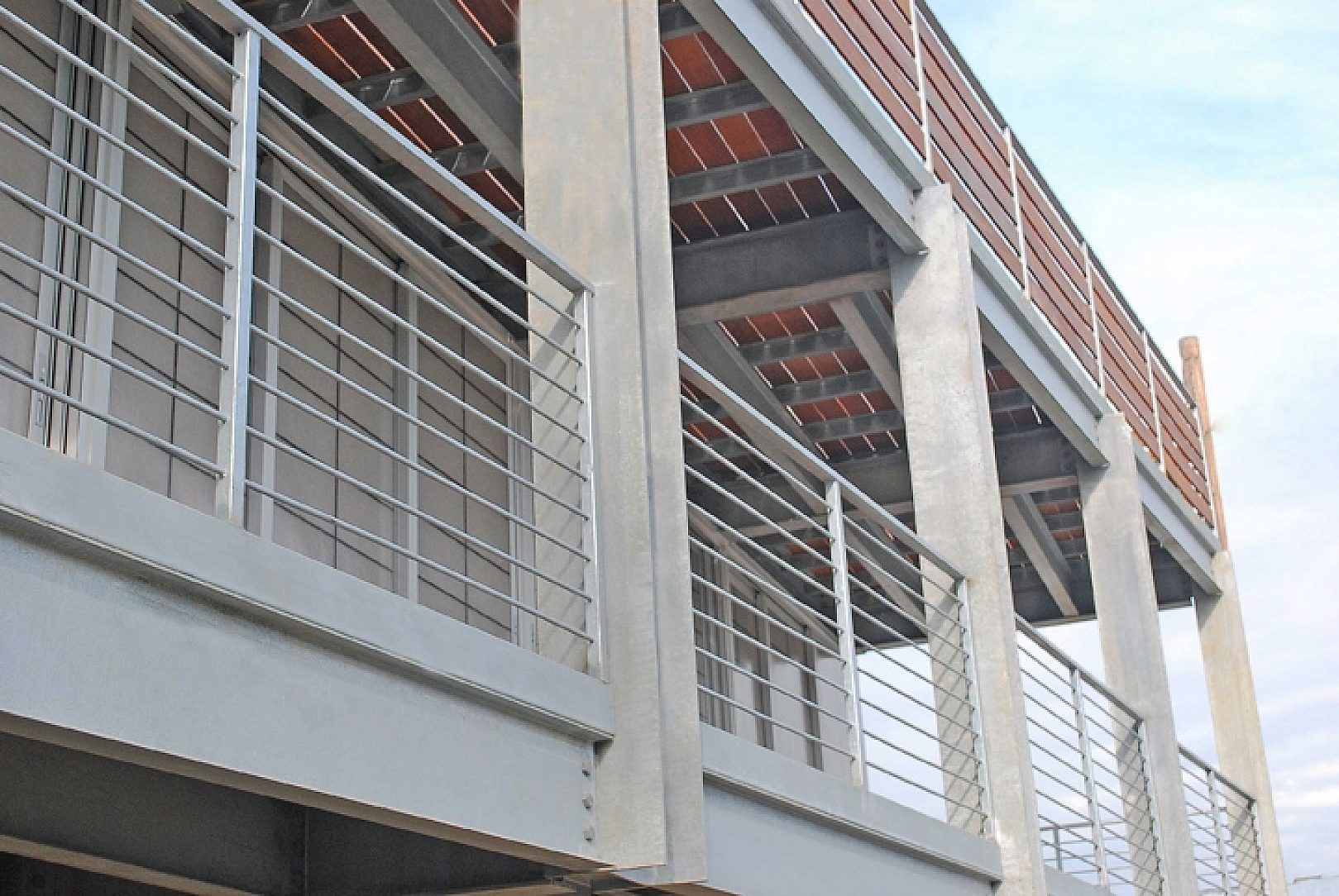 Located just a few short blocks from the Pacific Ocean, this striking contemporary residence combines geometric patterning of hot-dip galvanized (HDG) steel and custom glass windows to give the home the illusion of being an office building. All exposed steel and interior substructural pieces, as well as handrails and external security fencing for this project were specified to be hot-dip galvanized for durability and ease of maintenance, as well as the cool urban look of exposed structural steel.