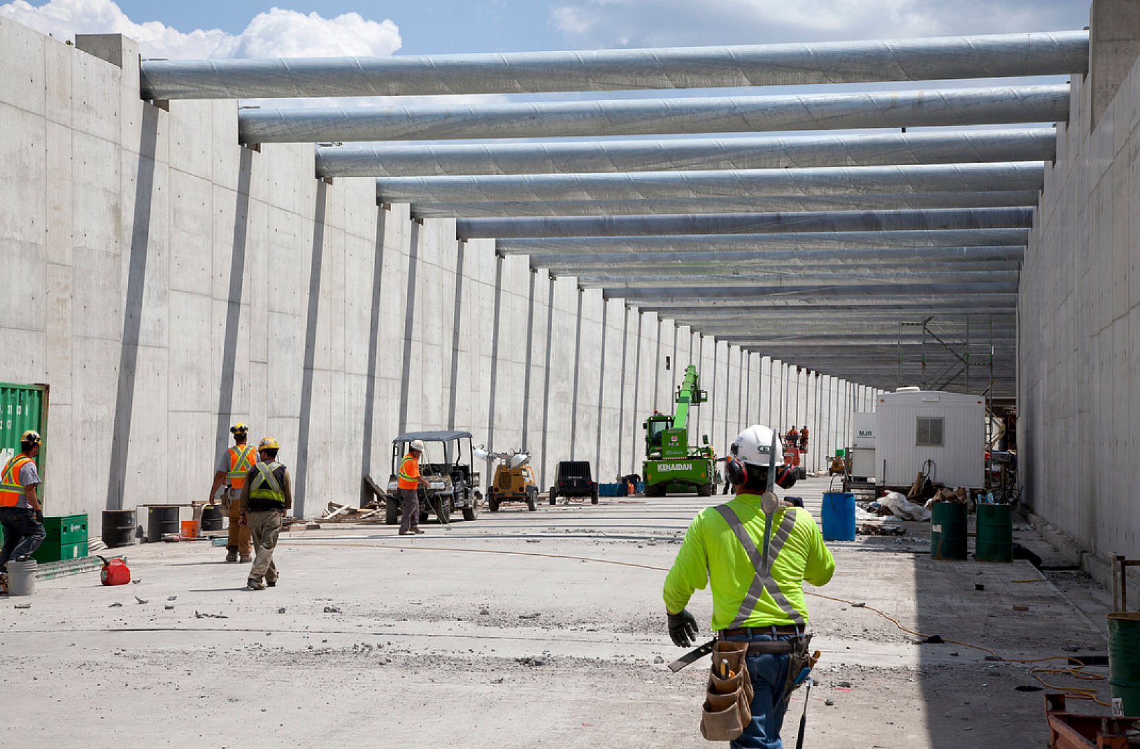 The components were used as the grading separation for a depressed corridor for rail traffic.The project scope included the construction of a tunnel - - one of the key elements of the Georgetown South (GTS) Project and Metrolinxs The Big Move infrastructure improvement. The purpose was to meet existing GO Transit ridership demand and future growth, as well as express rail shuttles connecting two of Canadas busiest transportation hubs: Union Station and Pearson International Airport. In addition to a 3000mm, cast in place super pipe, located 9 meters below grade using a tunnel boring machine, the rail corridor was lowered and triple-tracked by cut and cover method for approximately 20m in width, approximately 1.8km in total length. Two roads crossing the rail corridor were constructed on the top of the roof slab of the rail corridor. The project used 110,000 cubic metres of concrete structure, and asphalt pavement of 800t. Kenaidan Obayashi Constructors secured a contract worth CAD $189.3 million from Metrolinx to construct the Weston Tunnel Phase III Grade Separation project.