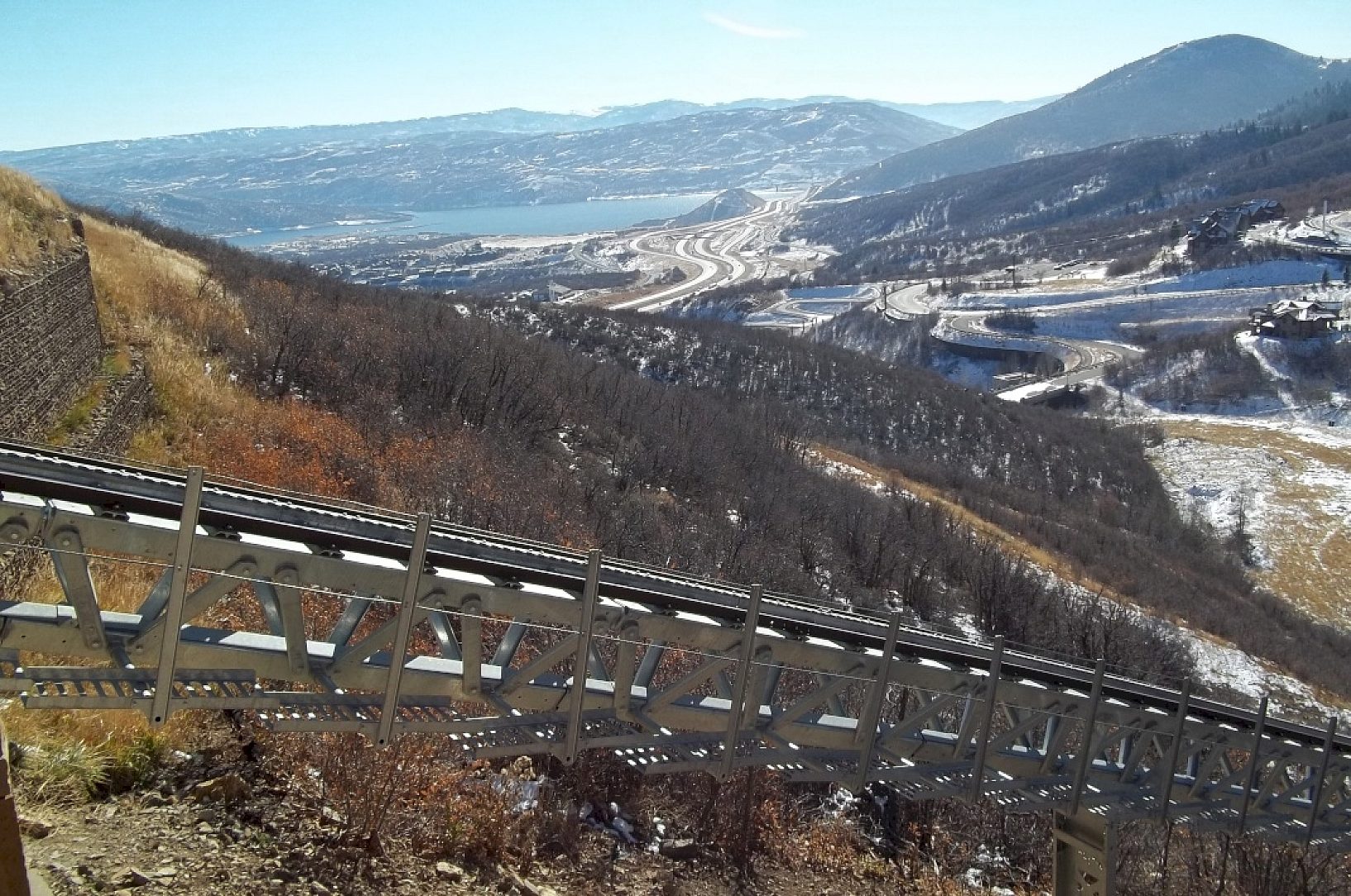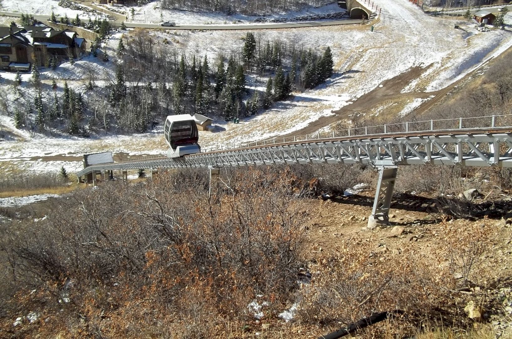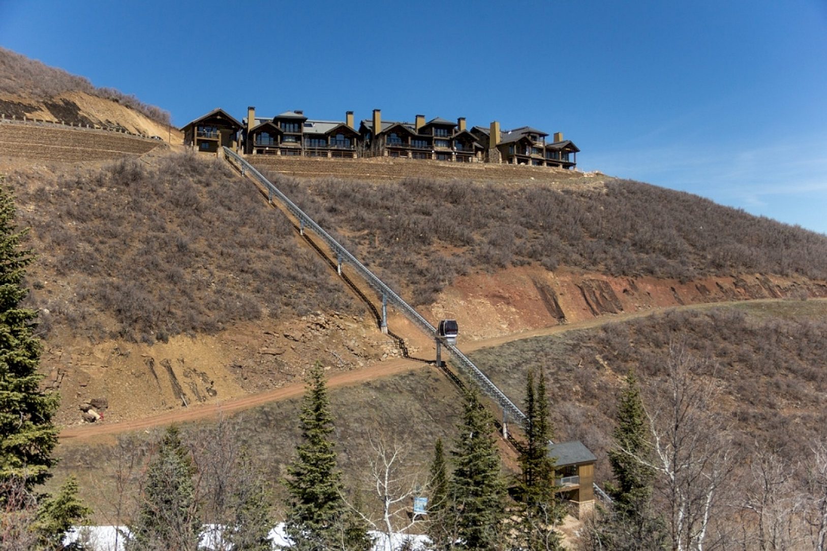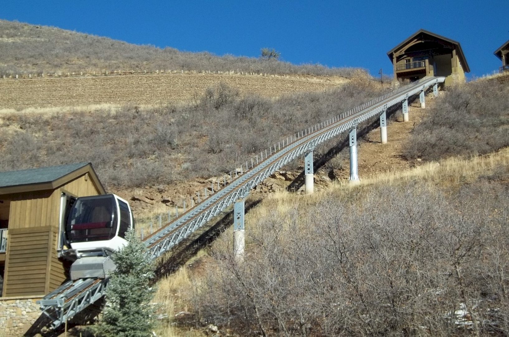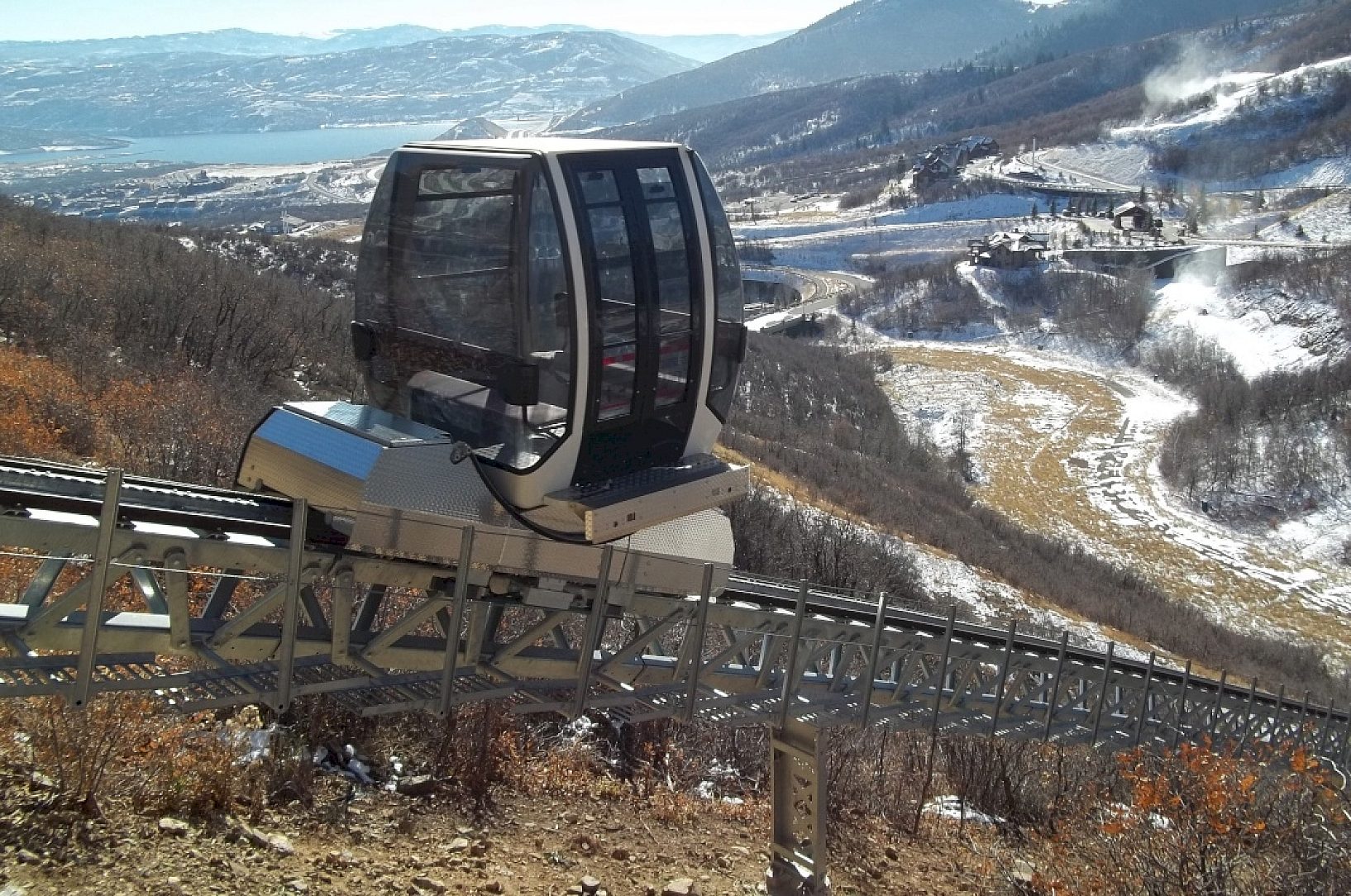 The unique rail system at Deer Pointe traverses a hillside providing passengers with sweeping views of the surrounding mountains of Deer Valley and nearby Jordanelle Reservoir. The Hilltrac is an enclosed heated ski lift for passengers leaving the ski slopes to return to their residences high atop the ridge at Deer Pointe.