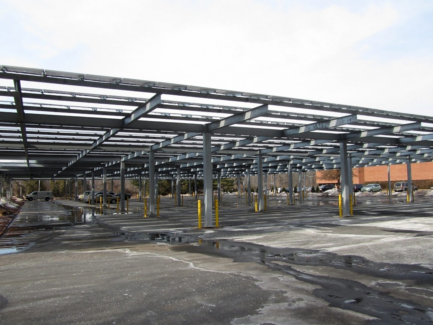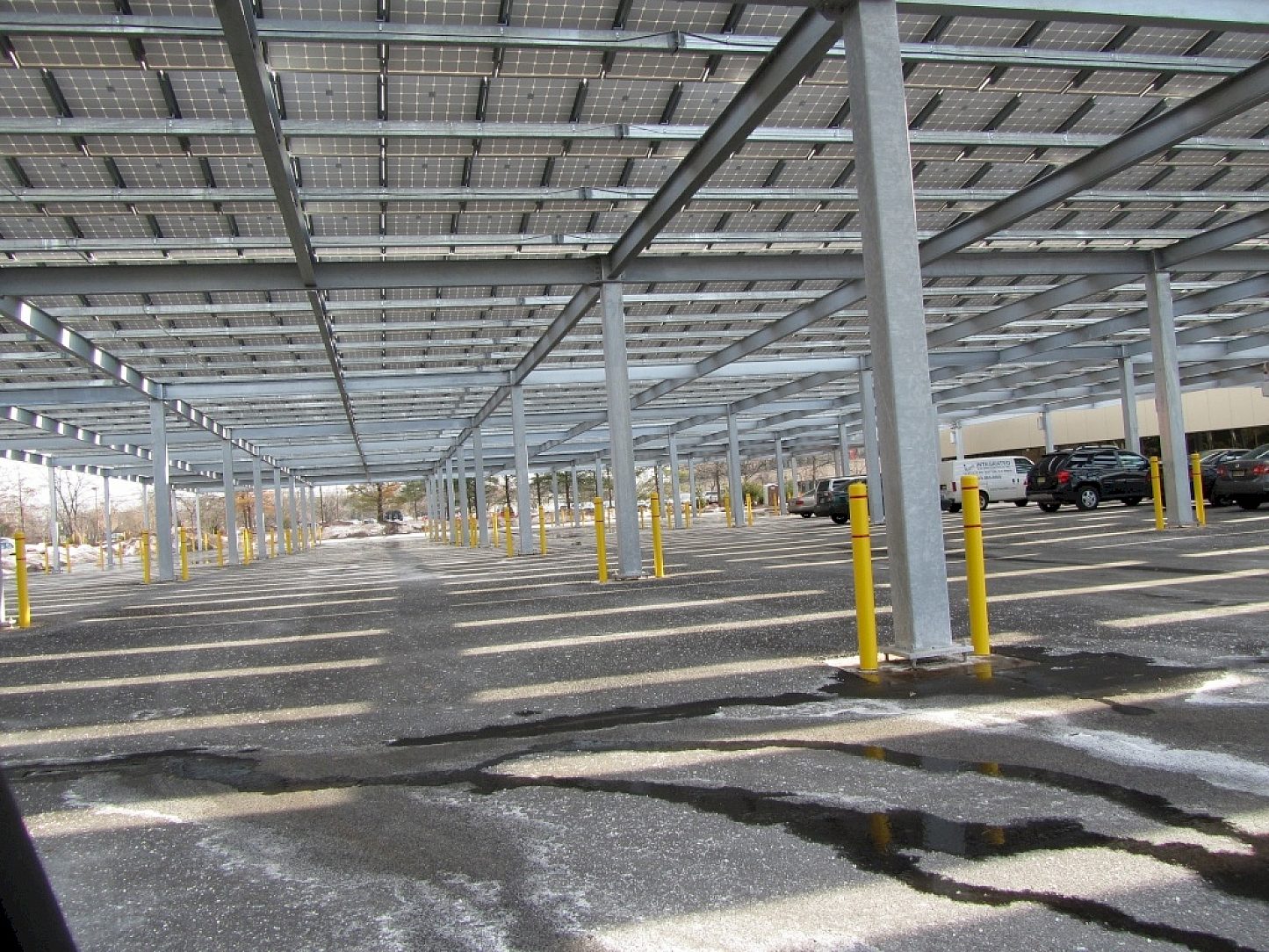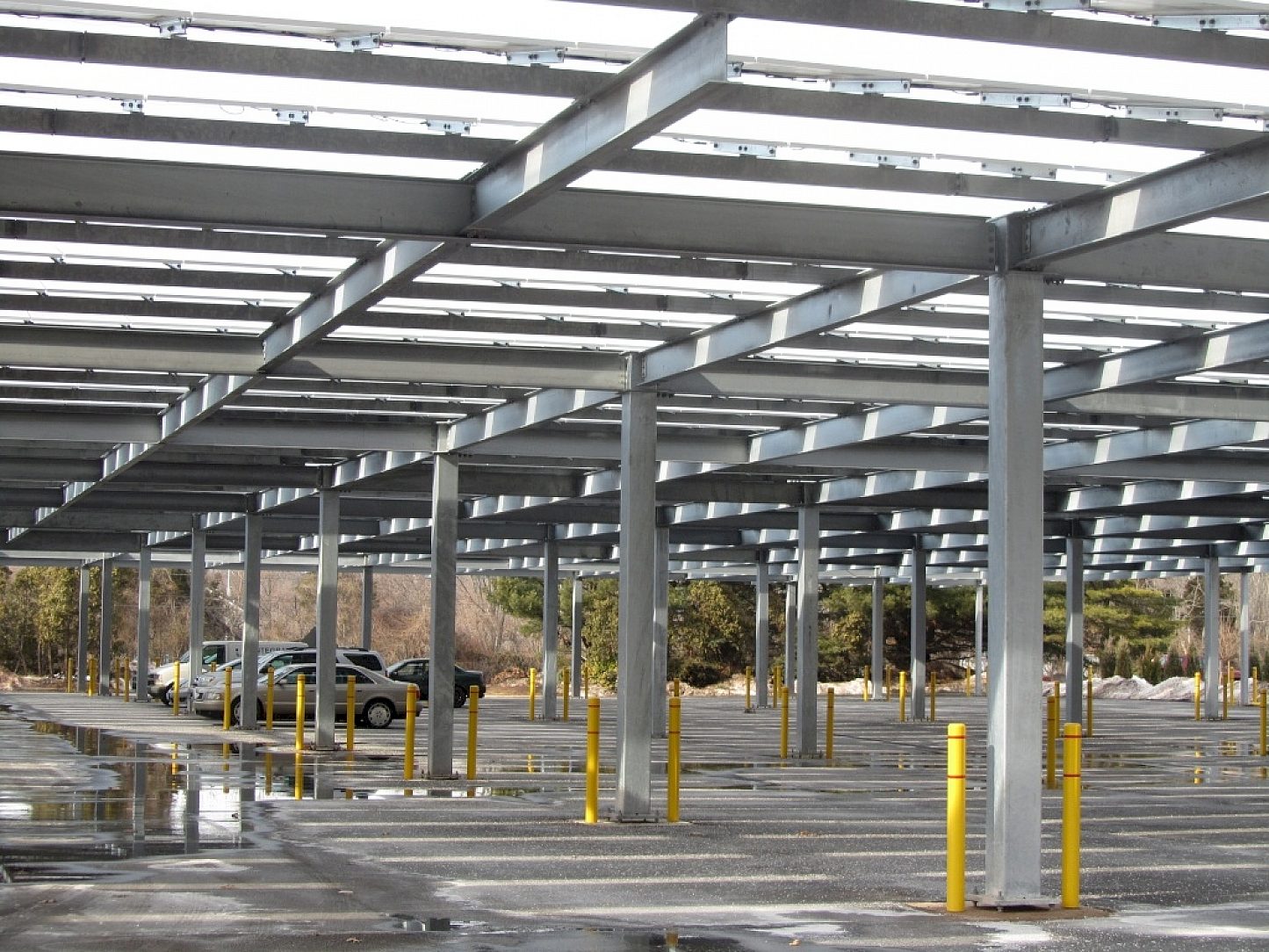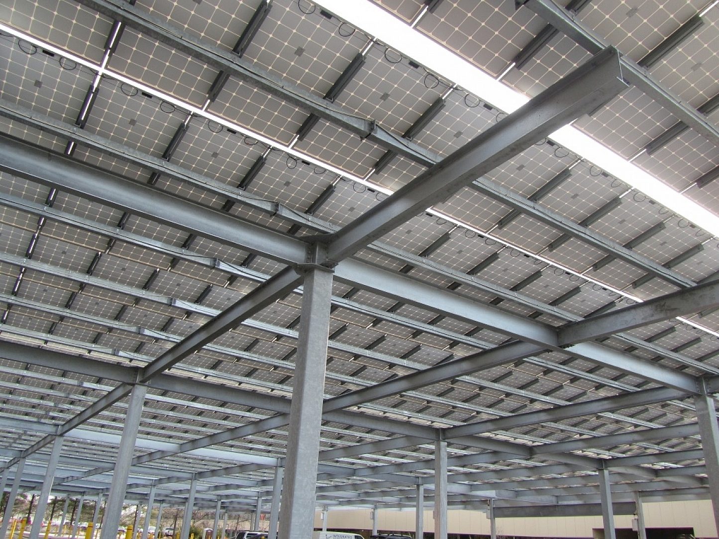 A European design team with prior experience hot-dip galvanizing similar structures was one of the first to incorporate a parking structure with the use of solar power. The project also have provides those with electric power for their automobiles a place to "recharge" while at work during the day. The Deutsch Bank has brought interest of others in the area of this kind of source for renewable energy. This is a safe, economical way of providing employees and visitors a place to park, and at the same providing a "solar field" for the offices.