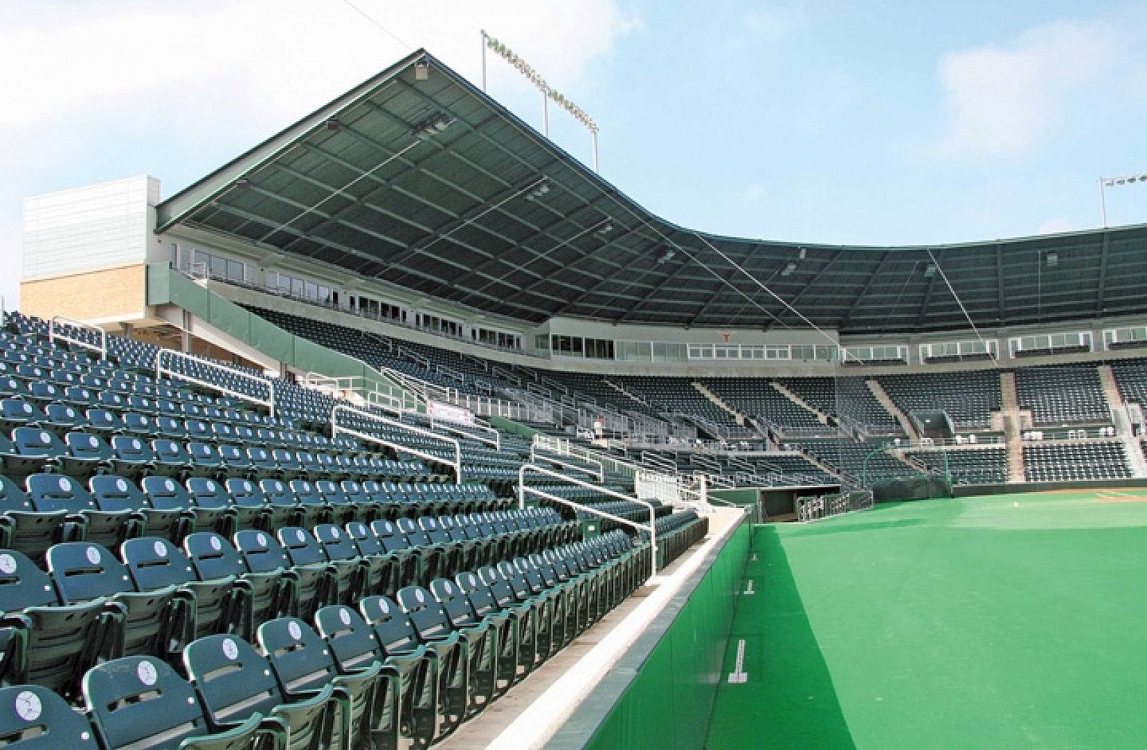 The 8,000 seat Disch-Falk Field is a well known landmark of the University of Texas campus. When it was built in 1975, the architects painted steel for all handrails and stairs. A mere twenty years later, rust was taking its toll on the steel. Plans for the new renovation included expanding the seating capacity and revitalizing the old handrail and canopies.