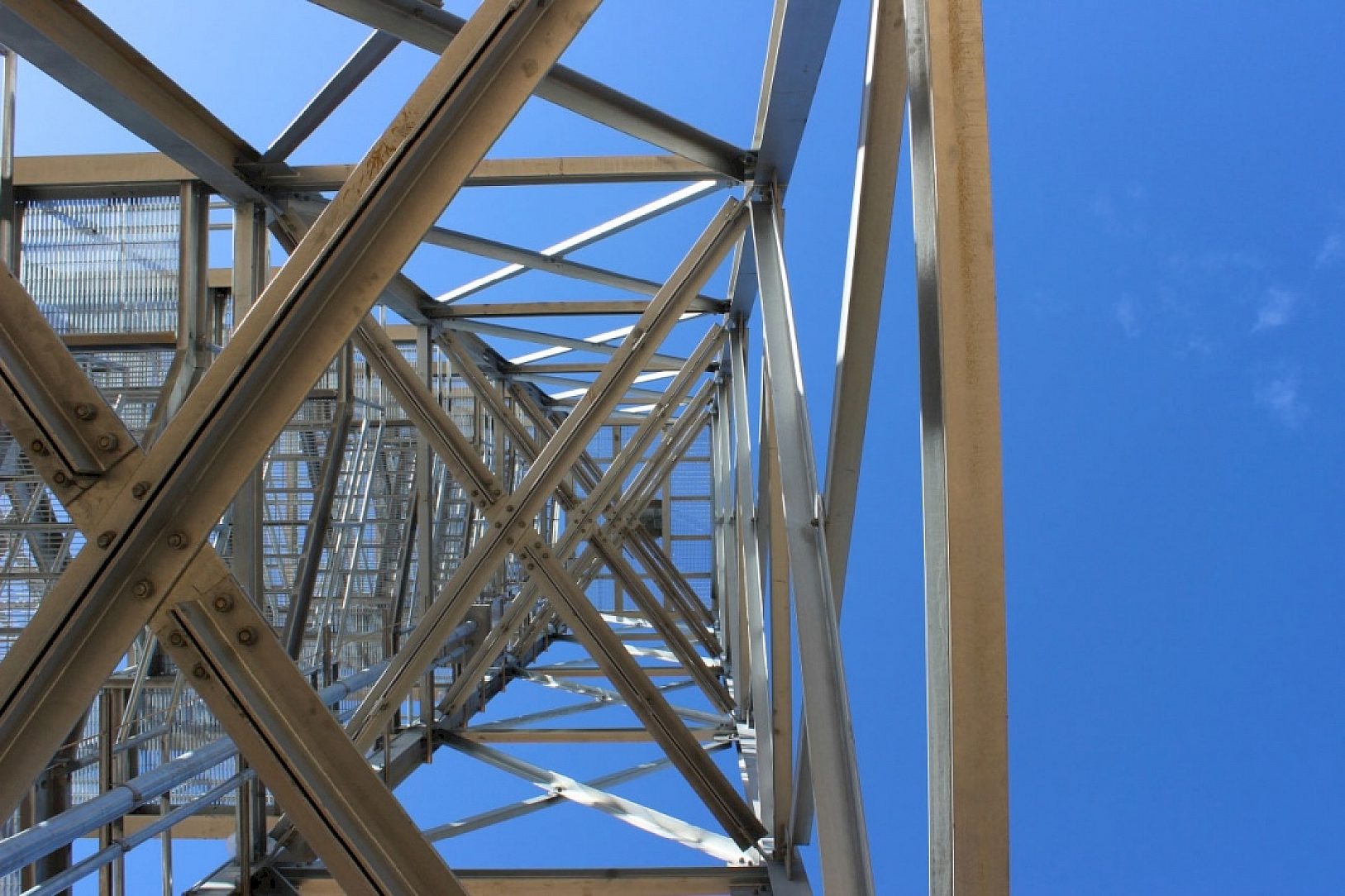 All 322 tons of structural steel, joists, stairs, rails, grating, fasteners, anchor bolts, and 17,671 sq. ft. of expanded metal used on top of the tower.