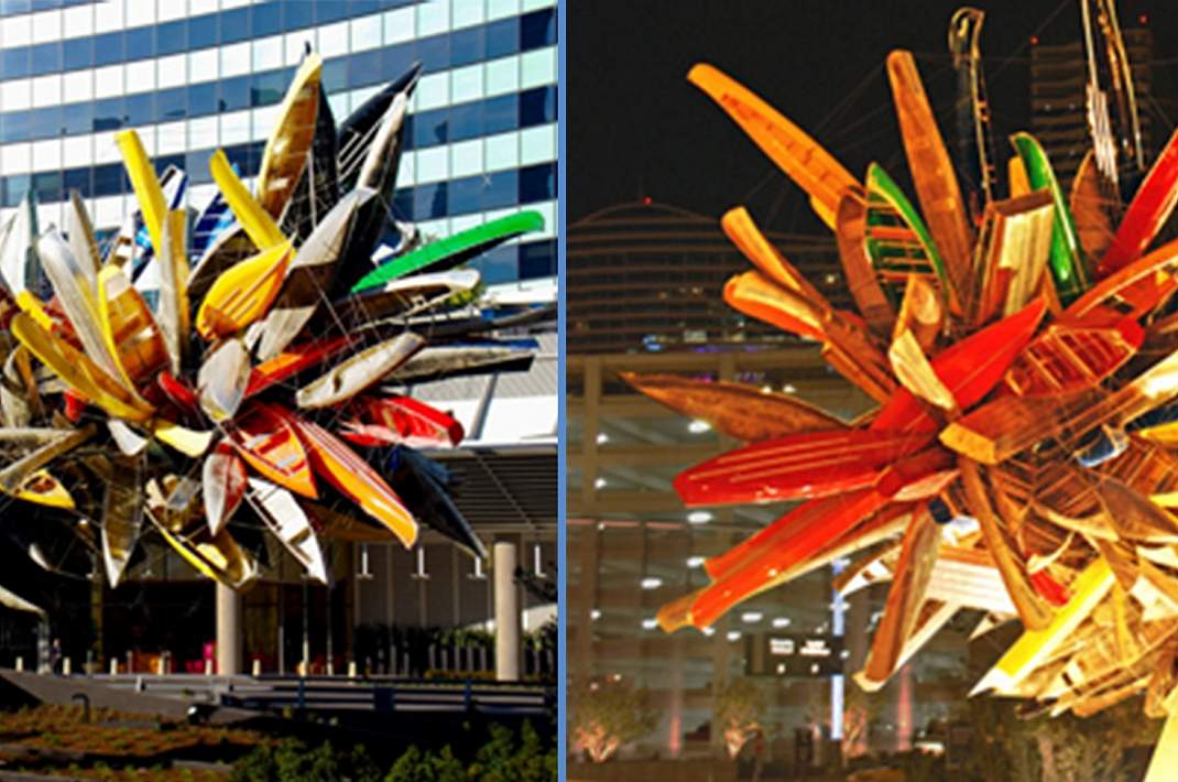 Hot-dip galvanizing was chosen for the supporting steel frame of the artistic pavilion structure along with the concrete reinforcing steel as needed to ensure the long term integrity of the overall concrete structure. With the internal supporting elements being hot-dip galvanized, there are no concerns for any future corrosion or maintenance problems.