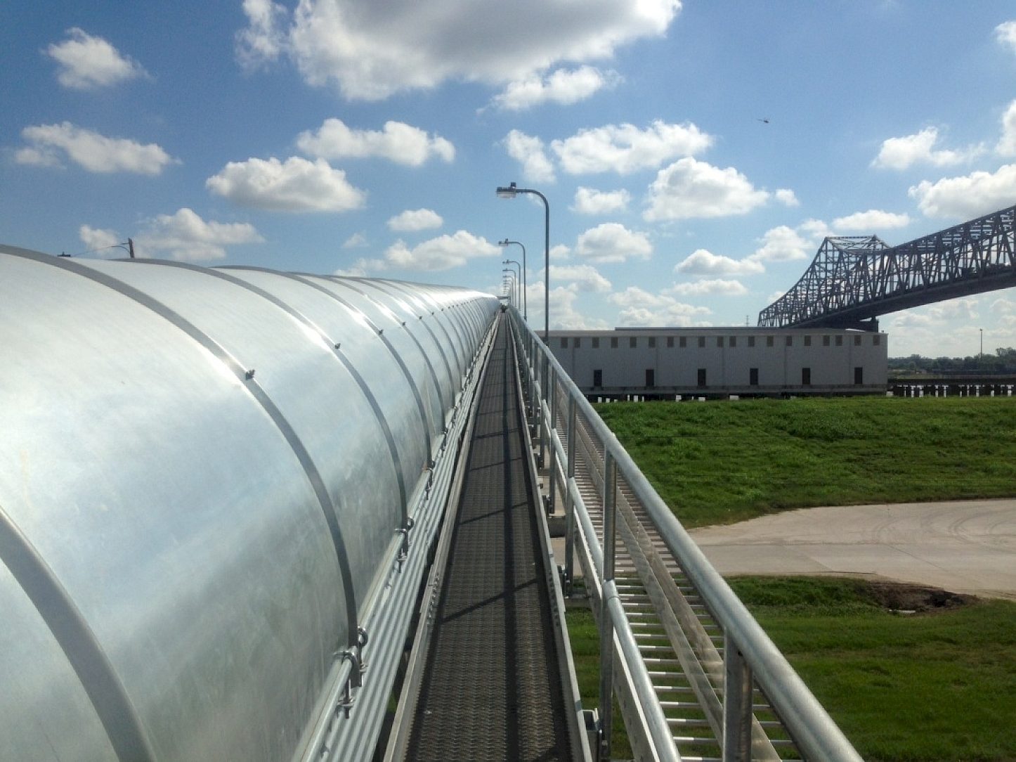 The facility will be highly visible to thousands of commuters crossing the Horace Wilkinson Interstate 10 bridge and needs to be aesthetically pleasing. Baton Rouge is located in a humid subtropical climate with mild winters, humid summers, heavy rainfall and the possibility of damaging tornado and hurricane force winds. It is also considered a major industrial, petrochemical center of the American South, which means the Wood Pellet storage and loading facility is located in the most corrosive, environment in North America. Logistically, time is money, therefore Drax Biomass needed a cost effective low maintenance, durable corrosion protections system that would prevent facility downtime for continual maintenance and repairs. HDG was the obvious choice for a corrosion protection system considering the high visibility by daily commuters, harsh subtropical climate, the very corrosive Industrial environment and the low maintenance needed. HDG will provide an aesthetically pleasing appearance, a low maintenance superior barrier and cathodic protection from the environment and will assist in maintaining the plants structural integrity for many years to come.