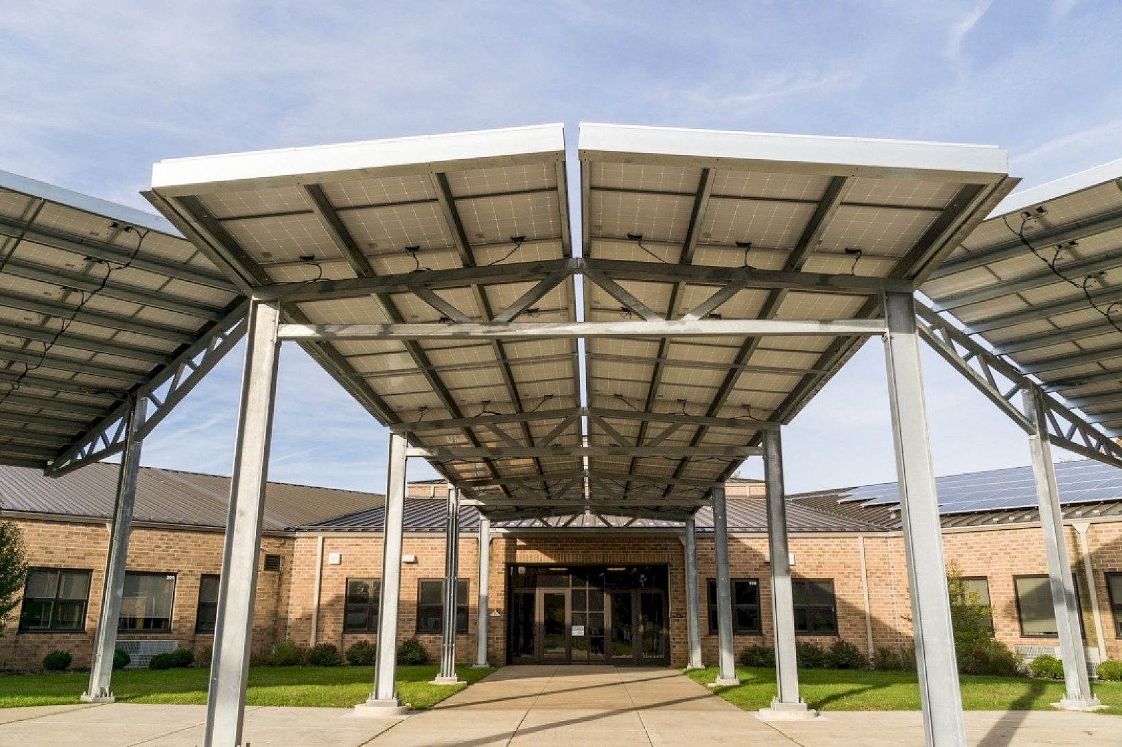 Furthermore, not only will the caports support the new solar array, but they also provide students and vehicles protection from the elements. Similar to how the solar array will save the township money by providing energy independence, the hot-dip galvanized support structure will provide long-lasting infrastructure stability.