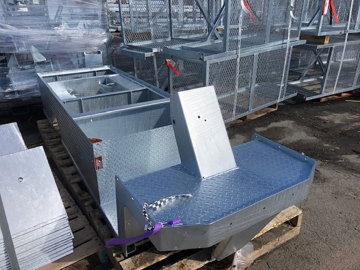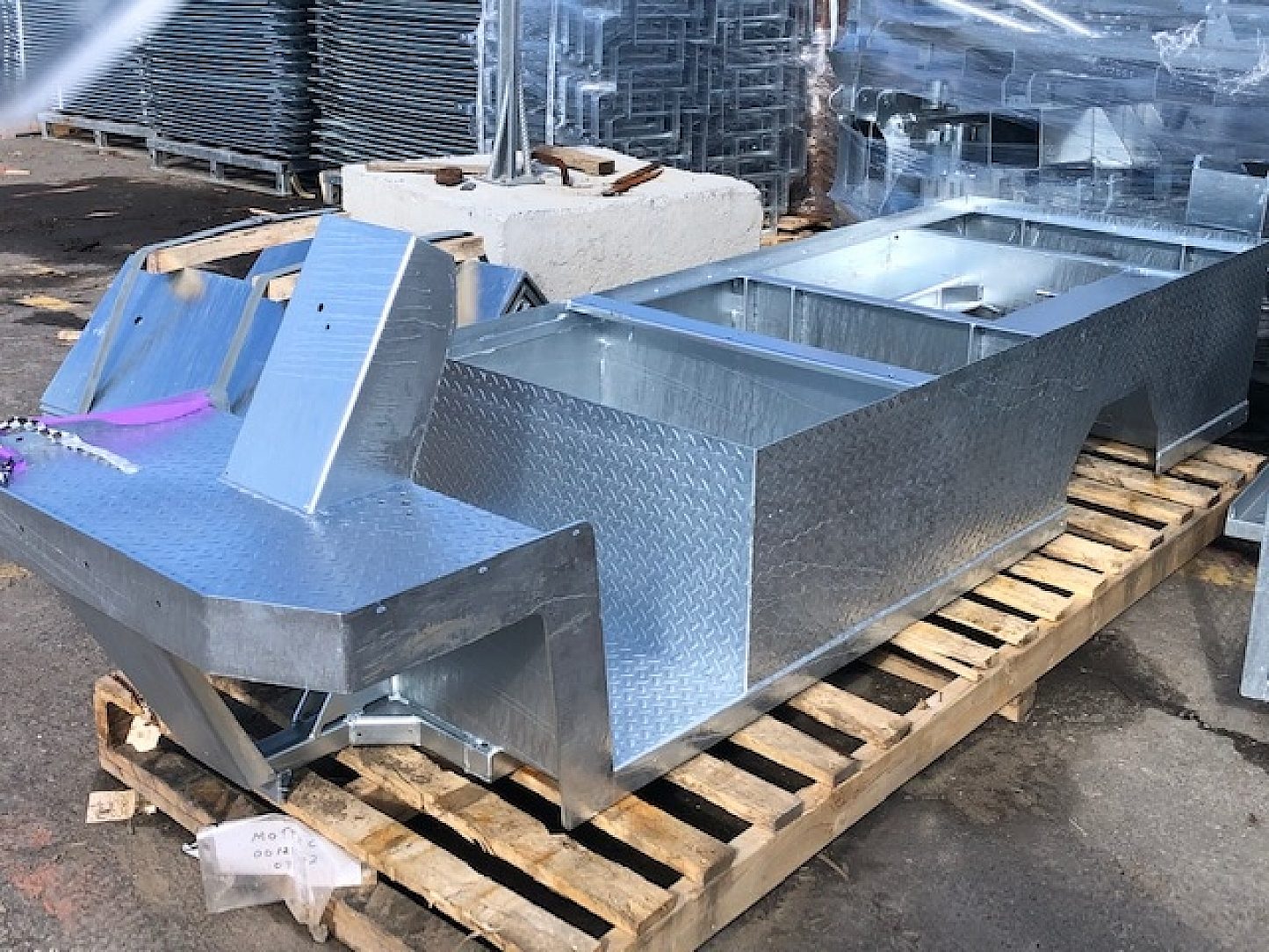 However, the challenge to Hot-Dip a very complex one-piece chassis with intricate tubular sections and lots of distortion inducing checker plate is hard enough but adding a duplex coating makes surface quality standards even more strict. Careful cooperation between the fabricator and galvanizer resulted in detail design changes that optimized the end result in terms of both cost and quality. While getting that first one right is critical there is no viability without the ability to replicate the result every time. To this end the galvanizer had the benefit of their proprietary galvanizing control system that flows information seamlessly from the client to the galvanizer’s technical department right down to shop floor operators thereby insuring that the precisely proscribed methodology is followed and documented every time at every step of the galvanizing process.