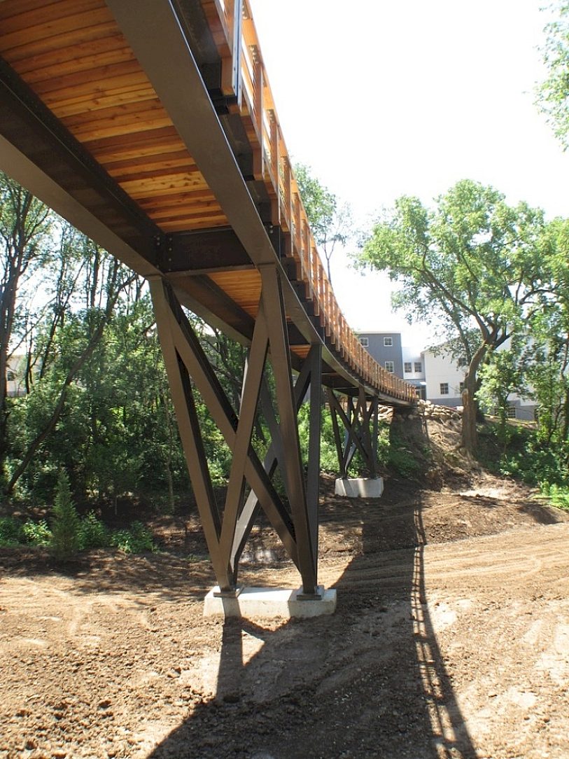 With the Epic Campus being located in Wisconsin, it meant the structure would be constantly exposed to the elements. The coating durability of hot-dip galvanizing (HDG) could stand the test of time through the snow and ice season. The addition of paint on top of the galvanizing will not only extend the service life of the galvanized structure but also allows the owner to maintain a color scheme that blends with the scenery, including the cedar railing and decking. HDG was extremely easy to specify with only minor fabrication changes to create vent holes for proper drainage. The initial cost of HDG has been proven to be competitive with other coating systems. HDG was chosen due to sustainability and life-cycle costs with little or no maintenance expected for many years.