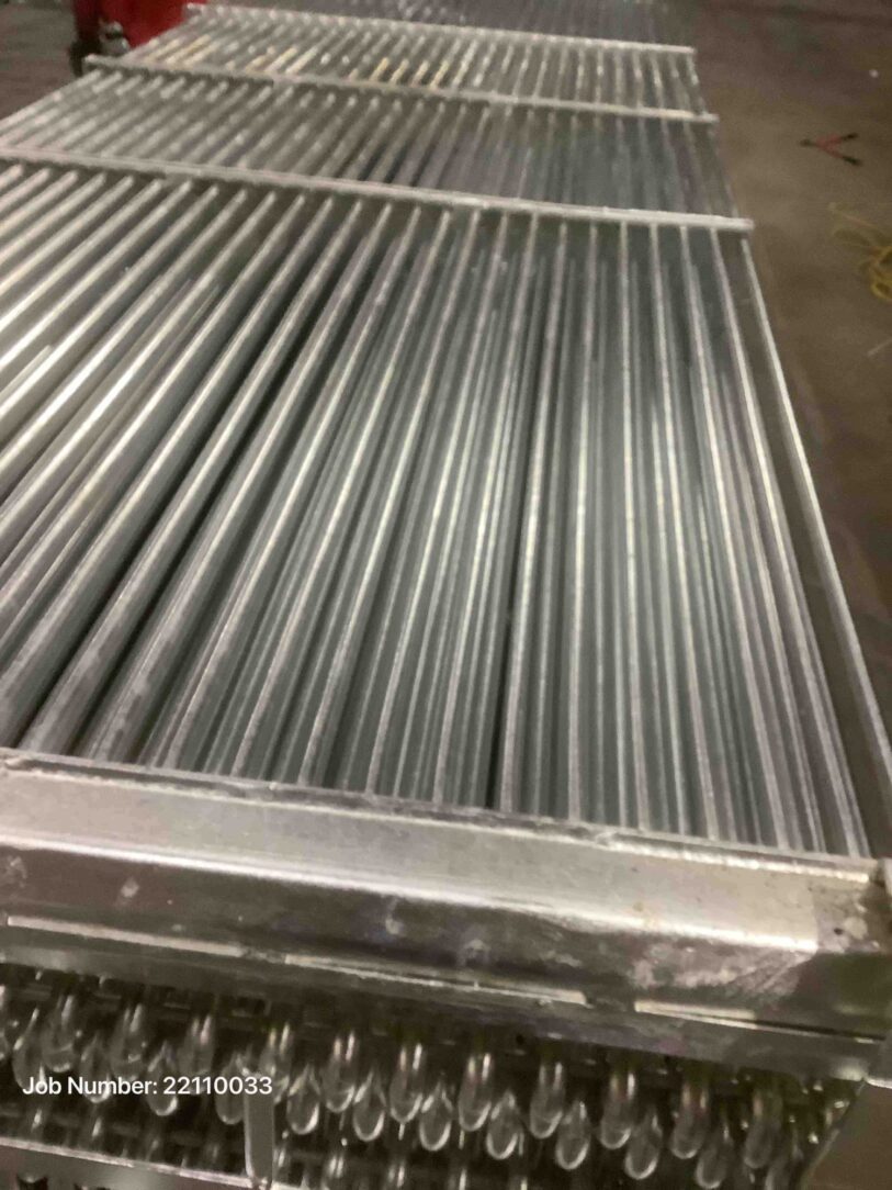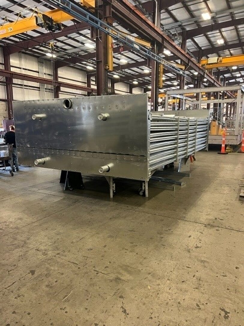 This unique product is made of continuous tubes without any ventilation. A pipe snorkel and a unique lifting/dipping fixture is used to press the evaporator coil into the zinc bath. Without the special lifting/dipping fixture from the galvanizer, the product would not be able to be hot-dip galvanized. The coils would float in the zinc bath or possibly explode. The coils can weigh in over 10,000 lbs. a unit making them a very complex product to run. These units have water running over them actively. This inherently creating a highly corrosive environment. The longevity and durability of the coils is very important and a key reason to why EVAPCO hot-dip galvanizes many of their coils. EVAPCO knows with a galvanized coil they can offer a longer life expectancy before replacement. EVAPCO's hot-dip galvanized line of coils attribute to roughly 2,500 tons of material annually, creating a large impact on the HDG industry. Without these coils basic cooling and refrigeration wouldn't be possible. The next time you crank up the hotel AC, or enjoy cold food products, you probably have EVAPCO to thank.
