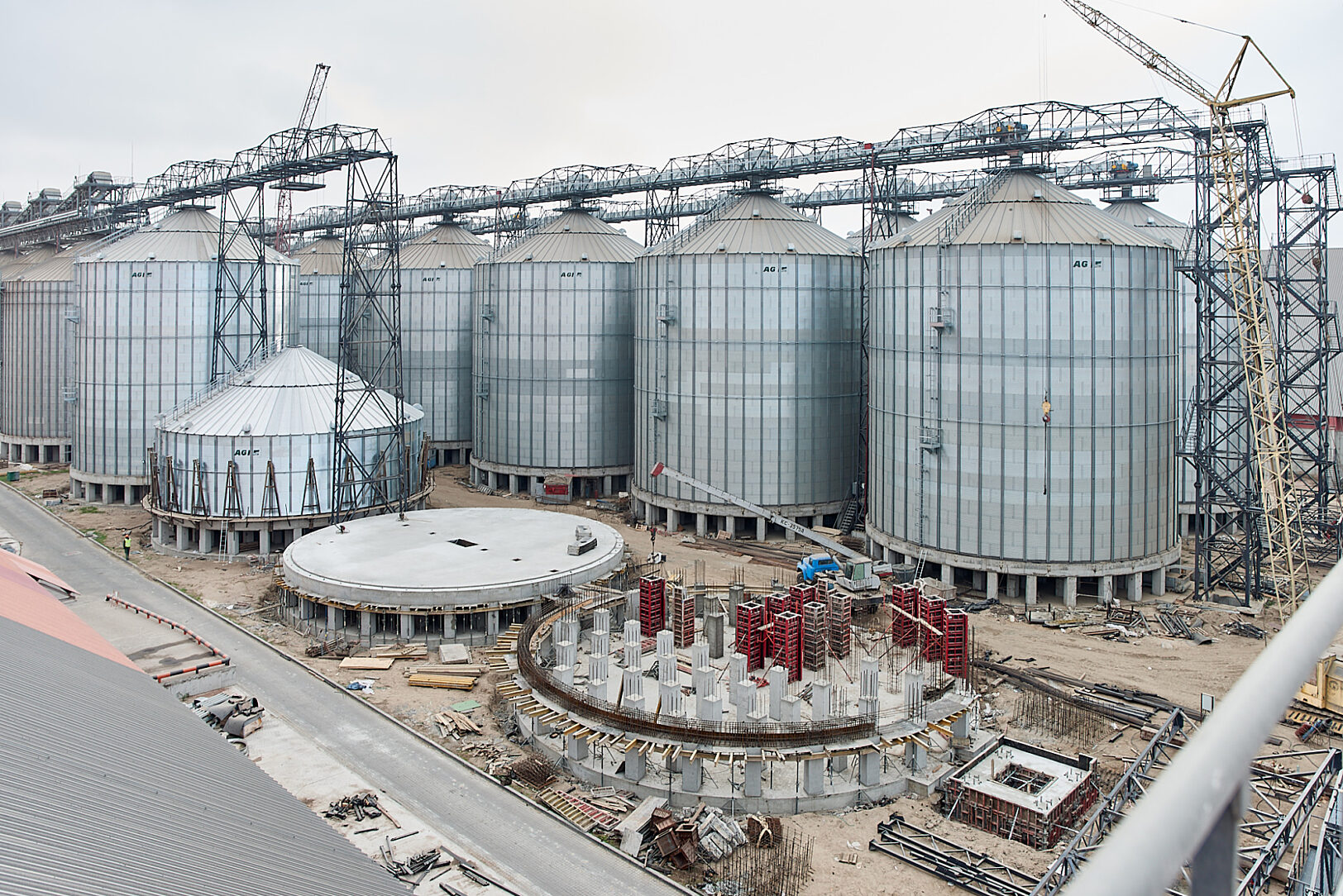 The fertile lands of Ukraine provide excellent soil for growing crops. The country strived to achieve the status as the “breadbasket of Europe” and with annual increases in agricultural exports, they are living up to this title. With growing traffic, the EVT terminal hit its capacity and required an expansion to keep up with demand. The company contracted AGI Hi-Roller to supply 20 grain silos for this project. With a combined capacity of 124,725 mt, the new silos will double the terminal’s storage capacity.