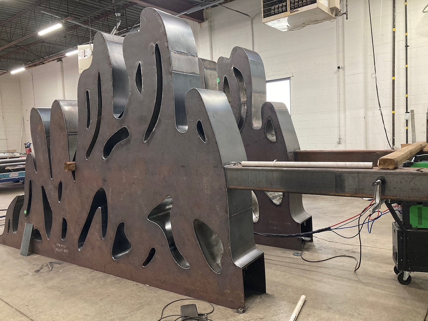 First, the engineer and fabricator used the knowledge of the galvanizer to ensure the fabricated components were designed for optimized zinc immersion. Next, they specified an architectural zinc finish that reduced paint preparation work. Lastly, the sections were fabricated and carefully galvanized followed by the application of the duplex coatings to the desired hues.