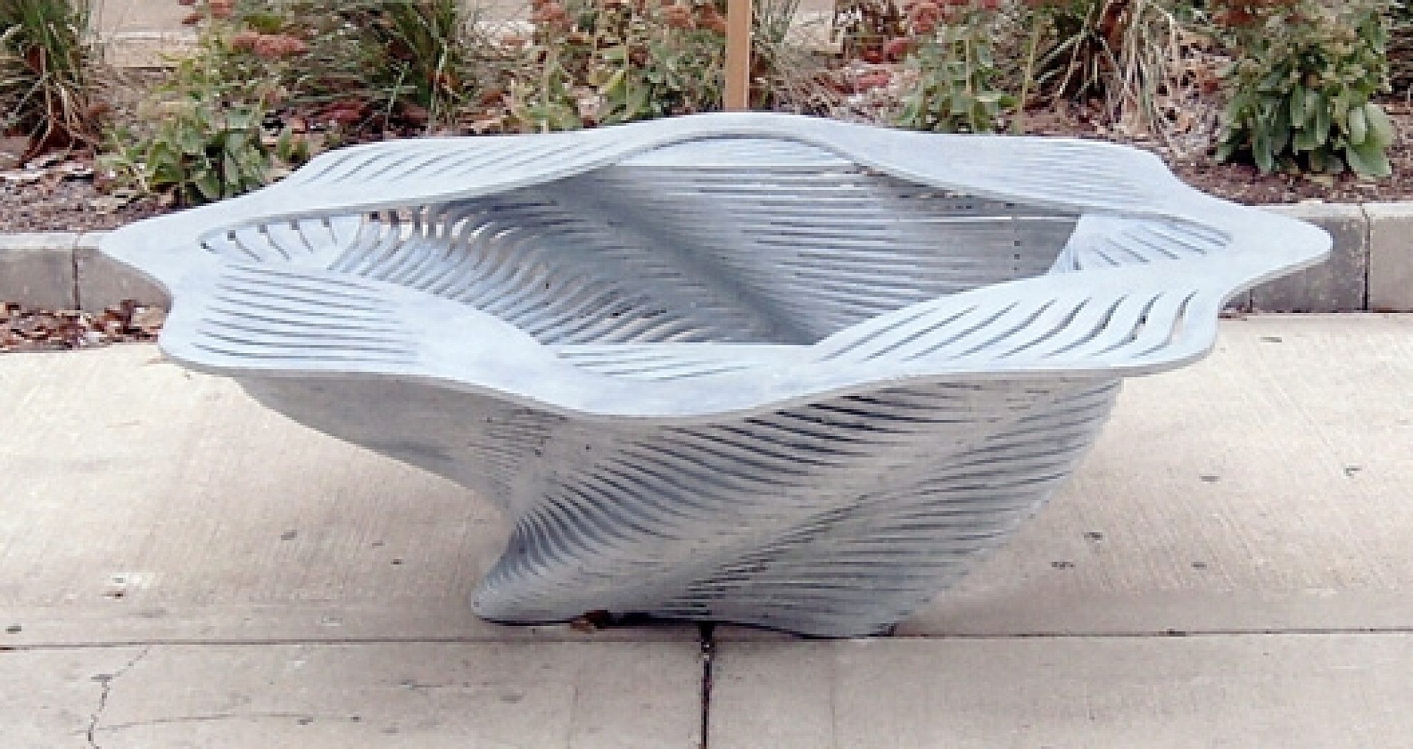 Unlike any other, the Ferndale Bench weaves in a complex circle in Detroit along Woodward Avenue. The Ferndale Bench was designed by architect Yuji Hsiao and fabricated by metal smith Robert Laskey.