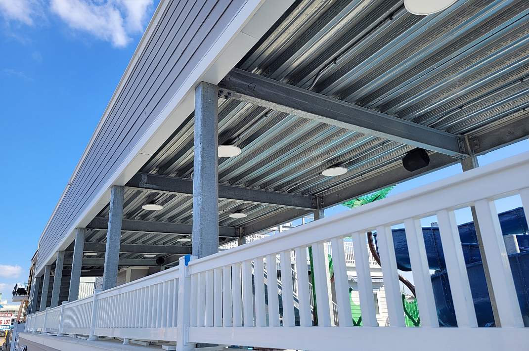 The architectural and engineering achievements of the plaza are truly exceptional. A striking duplex-coated trellis encircles the central gathering area, its curved steel design and varying elevations demonstrating a high level of technical precision. The walkway’s sinuous form seamlessly integrates with the surrounding landscape, gracefully connecting the plaza to the Riverwalk below. Its design demanded close collaboration between fabricators and galvanizers to ensure proper venting, and drainage of the hollow steel structures. This meticulous attention to detail underscores the complexity and ingenuity required to bring the project to life.
