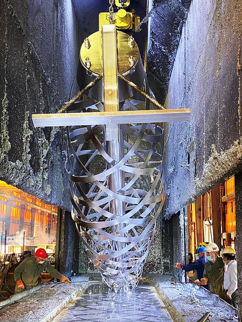 All finish work was done while the sculptures laid horizontally in the various shops. Future maintenance takes place in an open-exterior, public space with the sculptures vertically standing, touching sky. With the 40-foot height and complex jacket weave, durability is a prime requirement for Arlington. Hot-dip galvanizing was a critical design solution for the final coating durability.