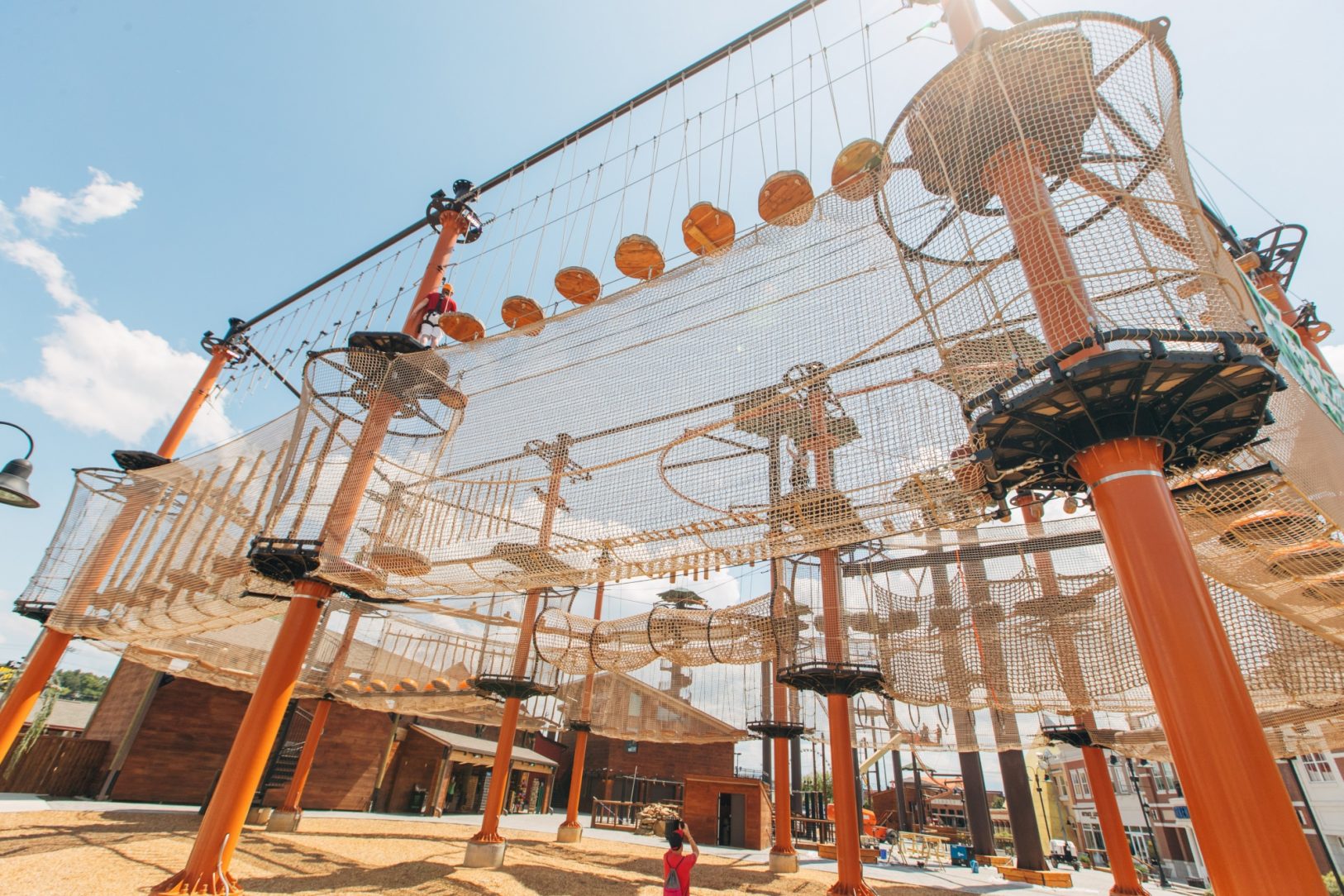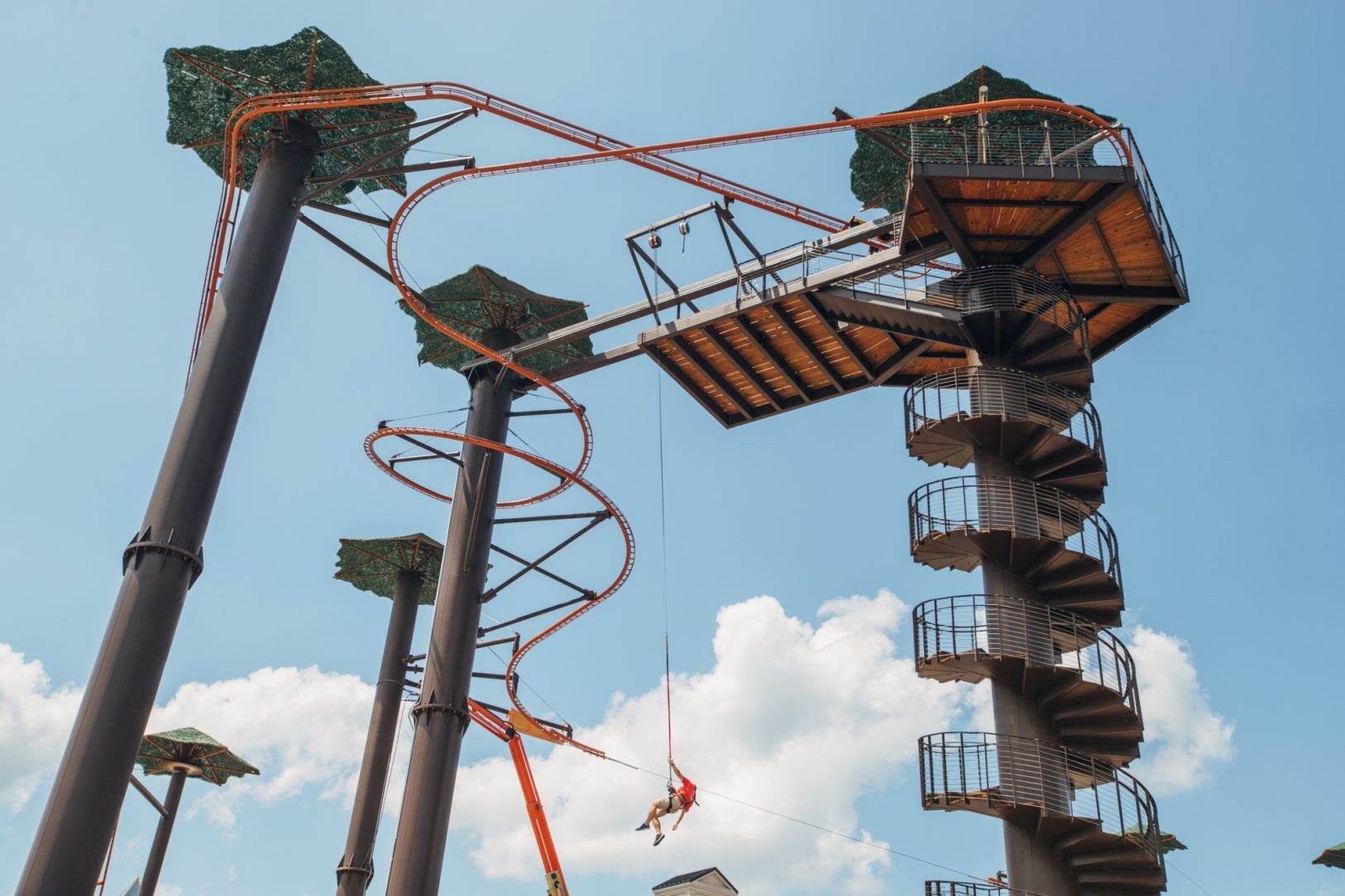 The Park, inspired by lumberjacks and the history of the local logging industry, is home to many family friendly attractions like obstacle courses, competitions, and a treetop free fall. The newest attraction, the Flying Ox, is the world’s first cable-to-rail zip line roller coaster. At 1,000 feet long and 80 feet high, the Flying Ox dominates the landscape of Lumberjack Square. This one-of-a-kind project was born through collaborative efforts from Climbworks Design, Holmes Solutions, and Steelworks Supply. Charlie Deathridge of Climbworks Design said he and the owners knew from the beginning they wanted to utilize hot-dip galvanizing to limit the challenges and costs associated with maintaining such a structure.