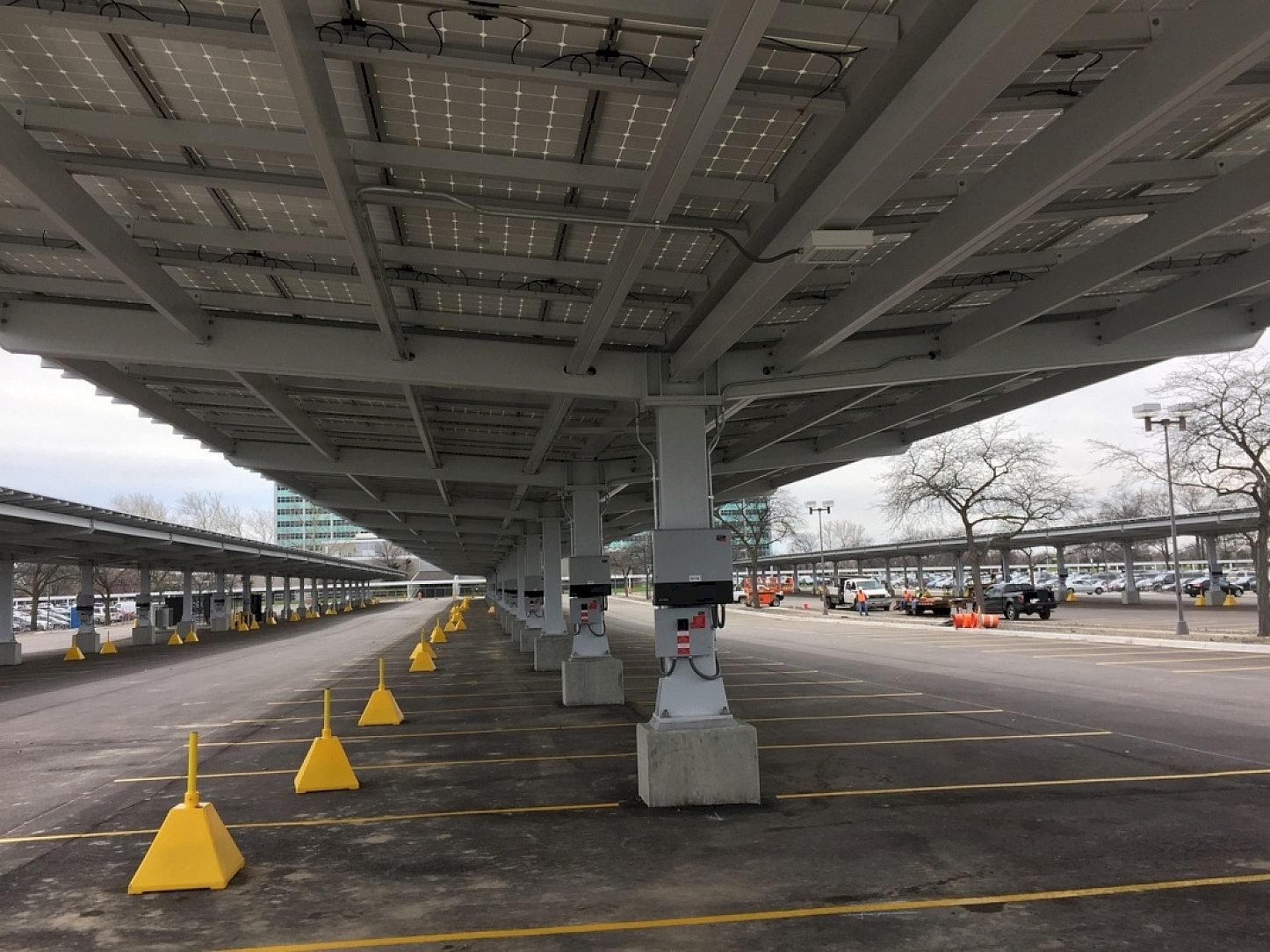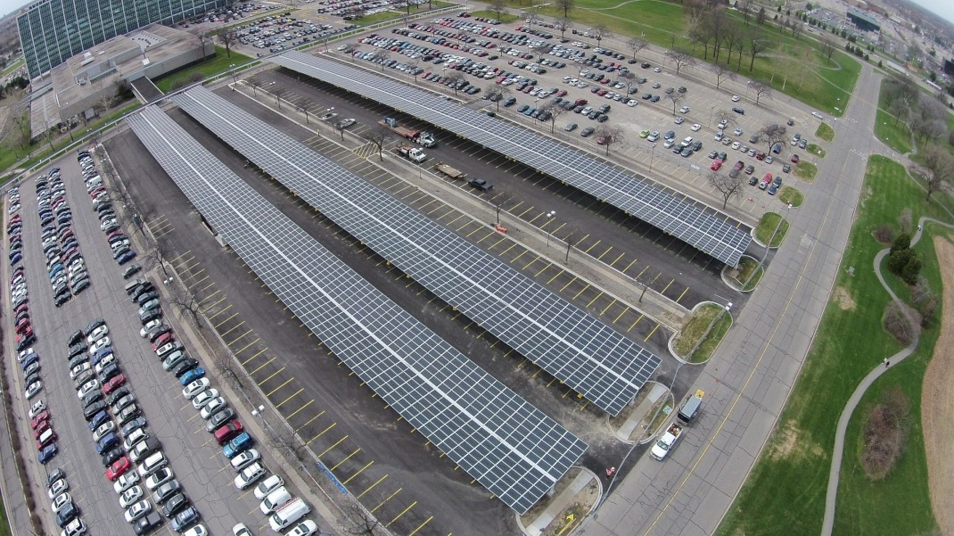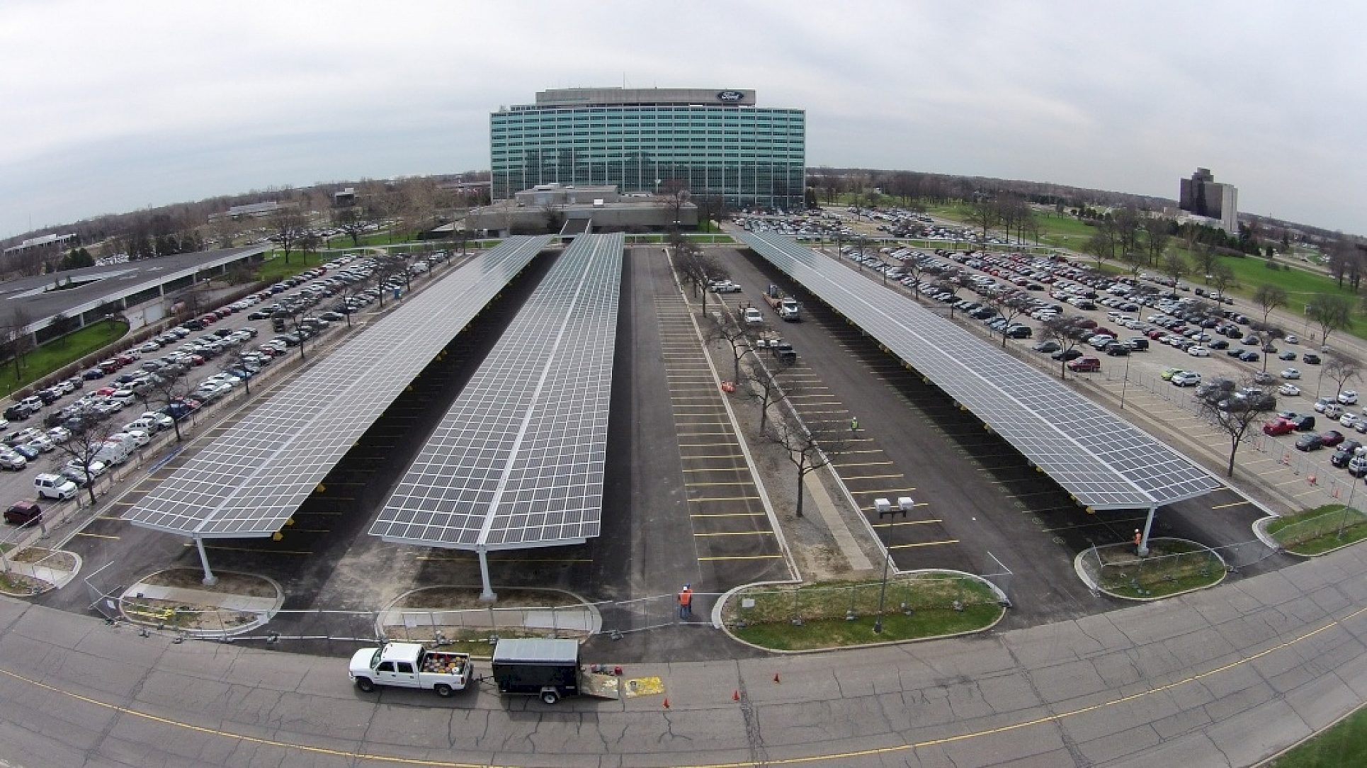 The Ford Motor Company of Dearborn, Michigan in an effort to support a more sustainable environment, and in cooperation of DTE Energy decided to build a parking structure and a source for solar power of their facility. The structure also allows for employees to charge their new Electric Ford Automobiles. This 150 tons of structural steel designed by Nova Consultants and Carport Structures of Oxford, Michigan was encouraged to use Hot-Dip Galvanizing to maintain a Green Environmentally friendly structure. The structure as well as the galvanizing was approved by Ford as the only way to go to maintain their effort for the environment. William Ford, Jr. (Great Grandson of Henry Ford) personally leads Fords Sustainability effort for not only their vehicles, but in all aspects of their facilities and World Headquarters.