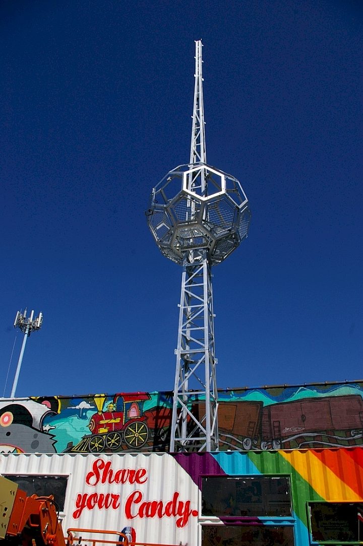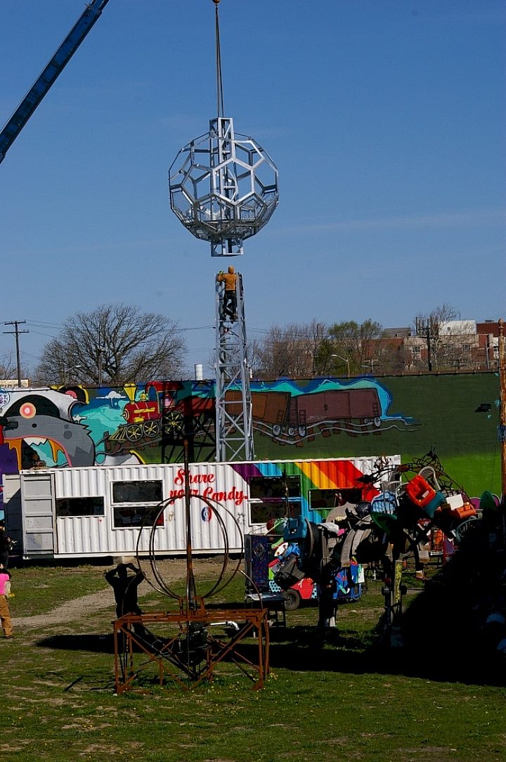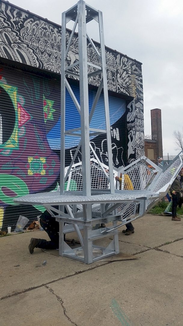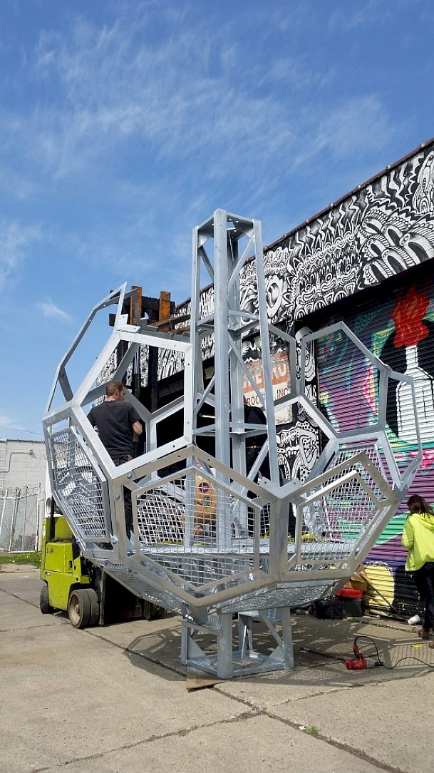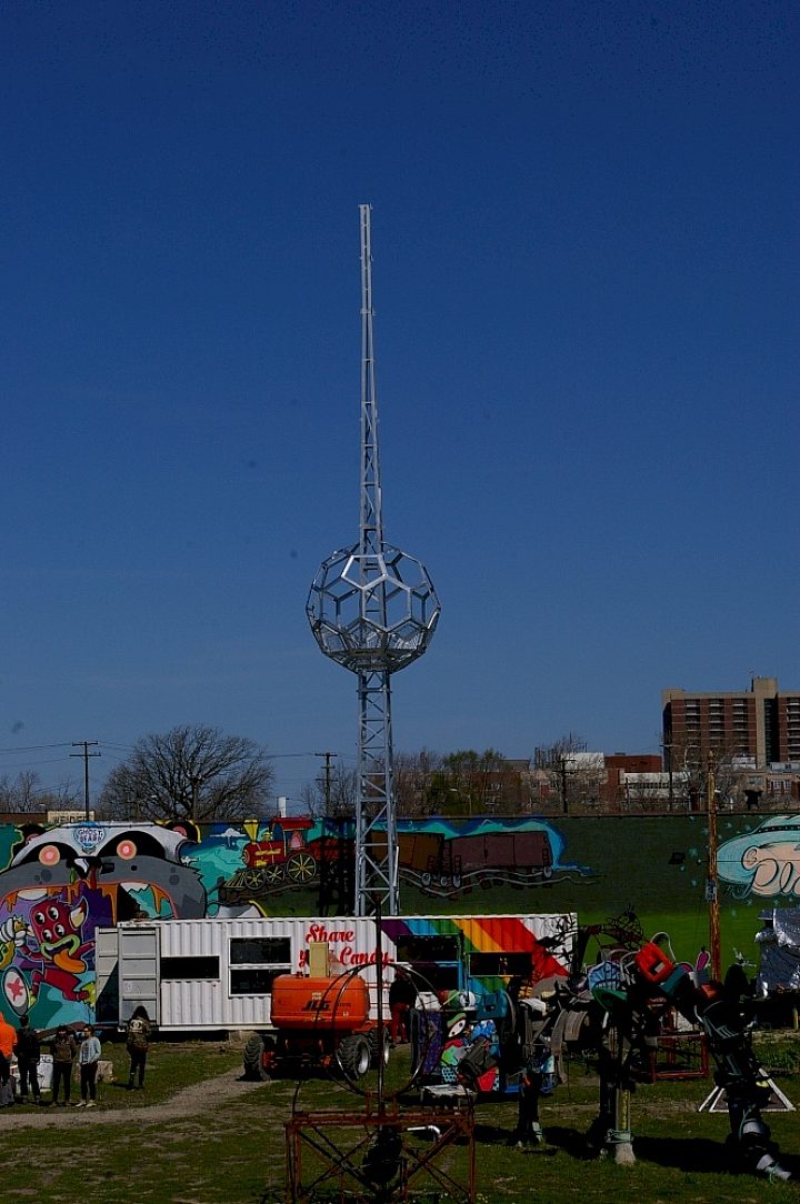 The art park was looking for a signature piece that would stand out and be a beacon for the community. The idea of the 75' "Freak Beacon" with its unique ball was just what they were looking for. In Detroit, the Motor City, Engineering meets Art! With the steel structure being exposed to harsh industrial environment hot-dip galvanizing was the only solution. It was green and sustainable unlike other coatings. The galvanizer was so excited to be a part of project and donate the galvanizing for the project.
