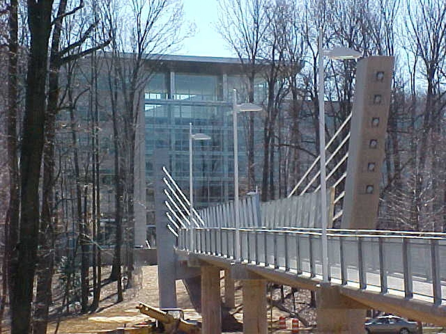 The Freddie Mac Pedestrian Bridge is located over a major thoroughfare in western Virginia, and is seen by thousands of commuters daily. With the constant traffic on the 5-lane street, a pedestrian bridge for foot traffic between the Freddie Mac office complexes was a necessity.