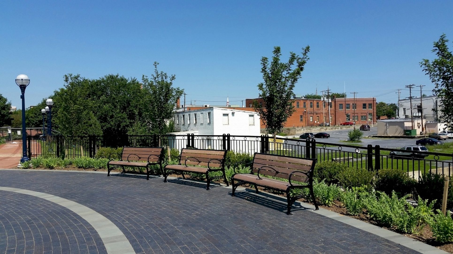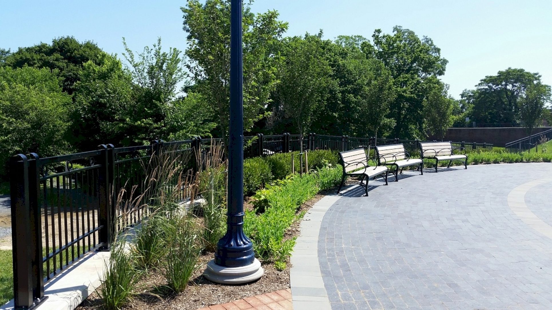 All of the Light Poles, Trash Receptacles, Fencing and Lawn Furniture were galvanized because the design firm, HNTB of Baltimore, MD, had specified hot dip galvanizing for many of their Urban Design projects with much success. They chose Galvanizing not just for the Sustainability but the economics and superior corrosion protection they have experienced. The City warned they would not have the money to maintain this structure in the future, which also helped the argument for using galvanized steel.