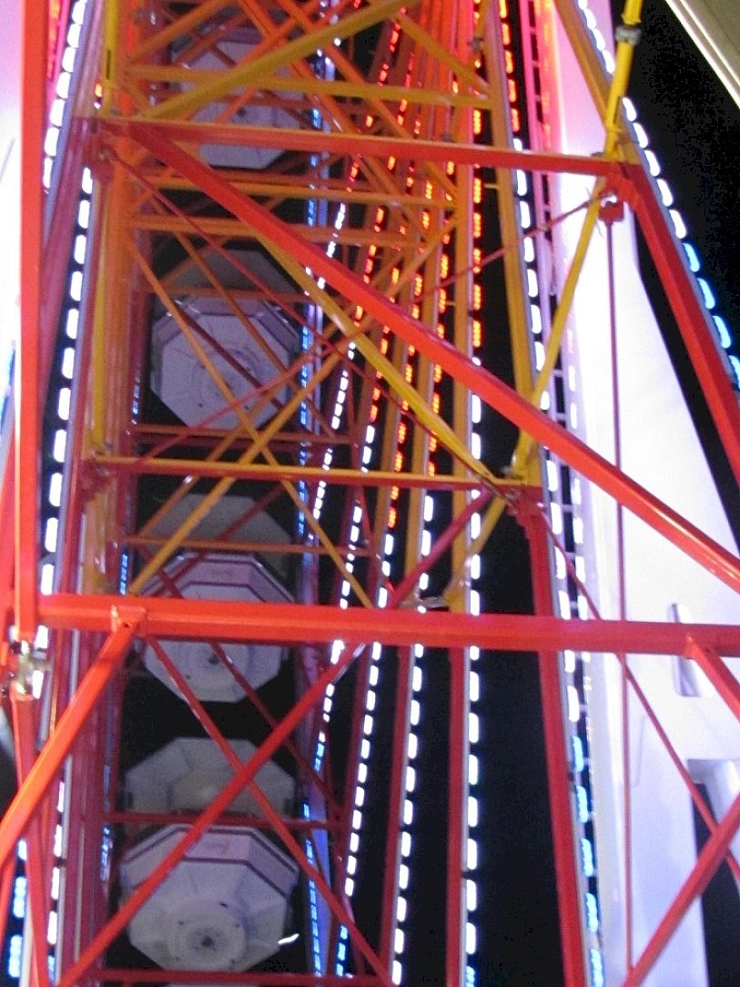 In the year 2000 when Landrys, Inc. purchased the Pleasure Pier in Galveston, Texas, hurricanes had left the park in shambles. When the time came to begin planning for renovations, the owners and designers were well aware of the harsh conditions the amusement park would encounter during its life-cycle. Among 16 major attractions, the Galaxy Wheel lies at the southern-most end of the pier, overlooking the Gulf of Mexico. The Galaxy Wheel is a 90-foot-high Ferris Wheel that can accommodate up to 160 children at a time.