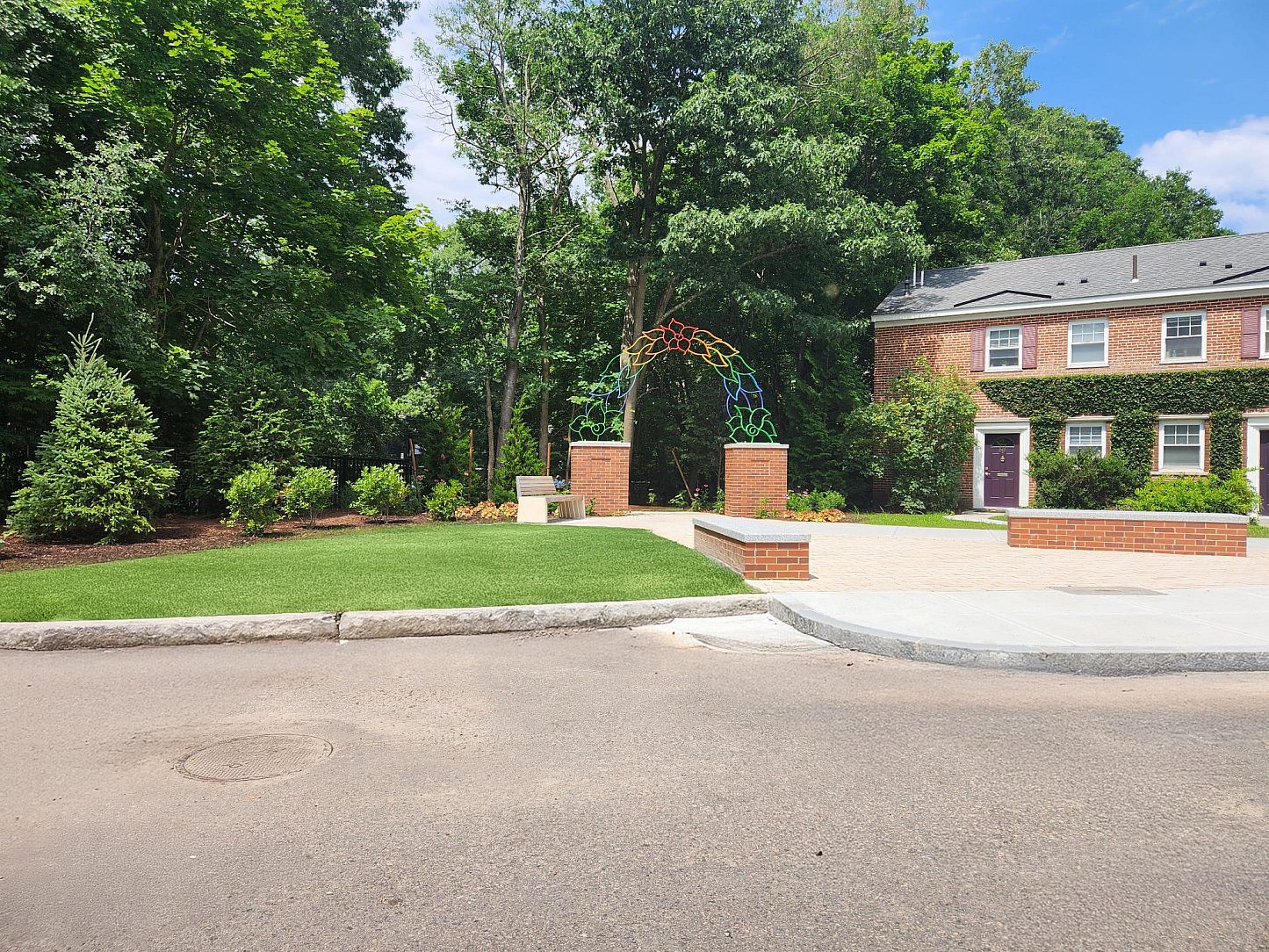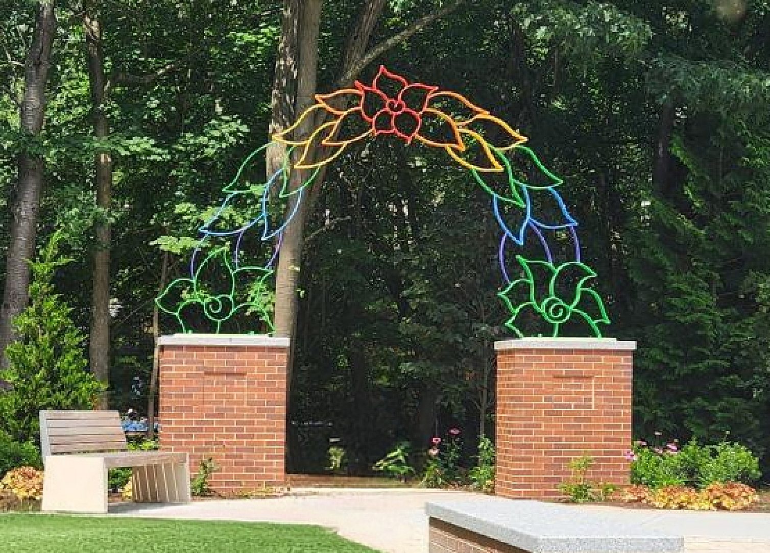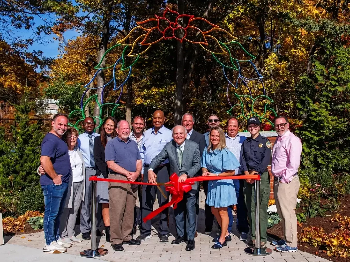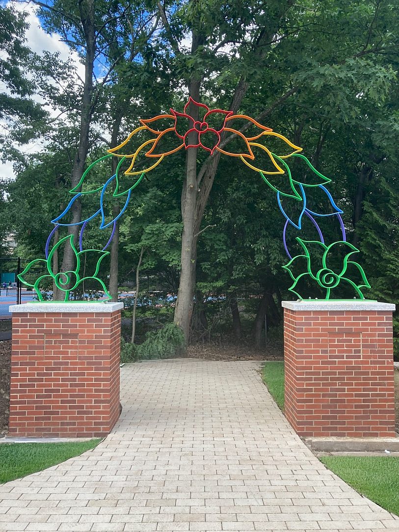 The sculpture—a steel archway adorned with vibrant individual leaves—has been given a second life through careful preservation efforts. Previously exposed to the corrosive conditions of Boston’s sea coast for over a decade without protective treatment, the archway showed significant signs of wear. To ensure its longevity in its new setting, the structure was hot-dip galvanized, providing durable corrosion resistance for decades to come. Each leaf was then meticulously painted in various colors, bringing renewed vibrancy to the piece while maintaining its symbolic and artistic integrity.