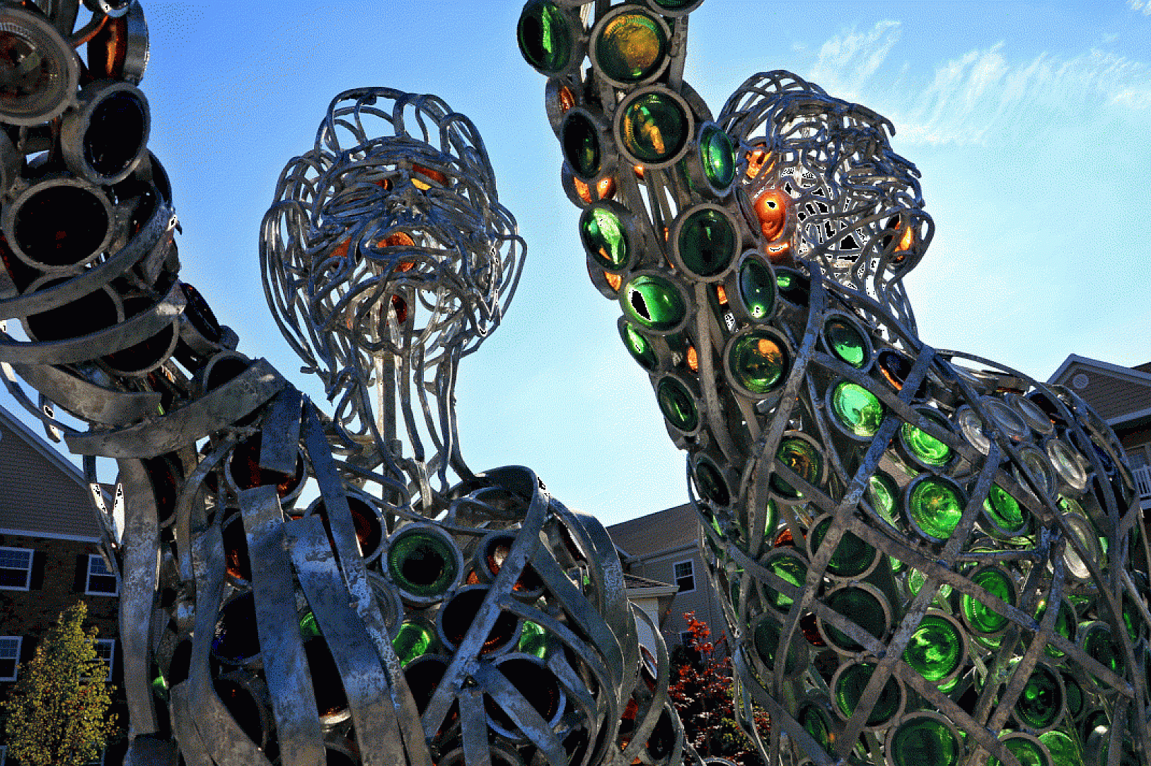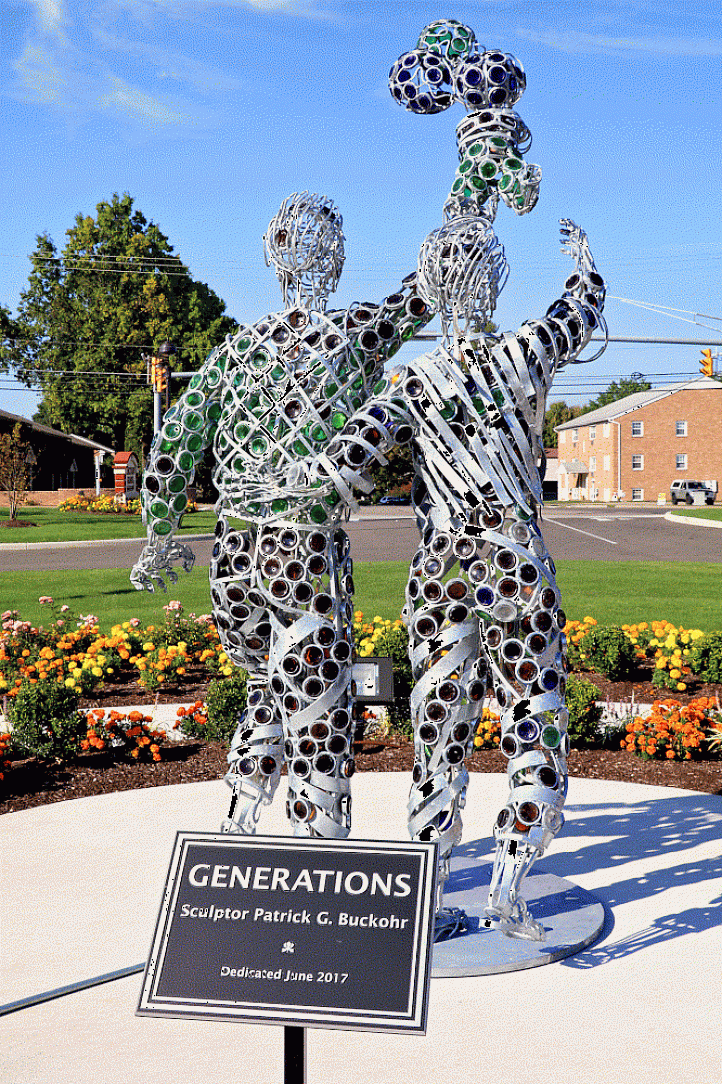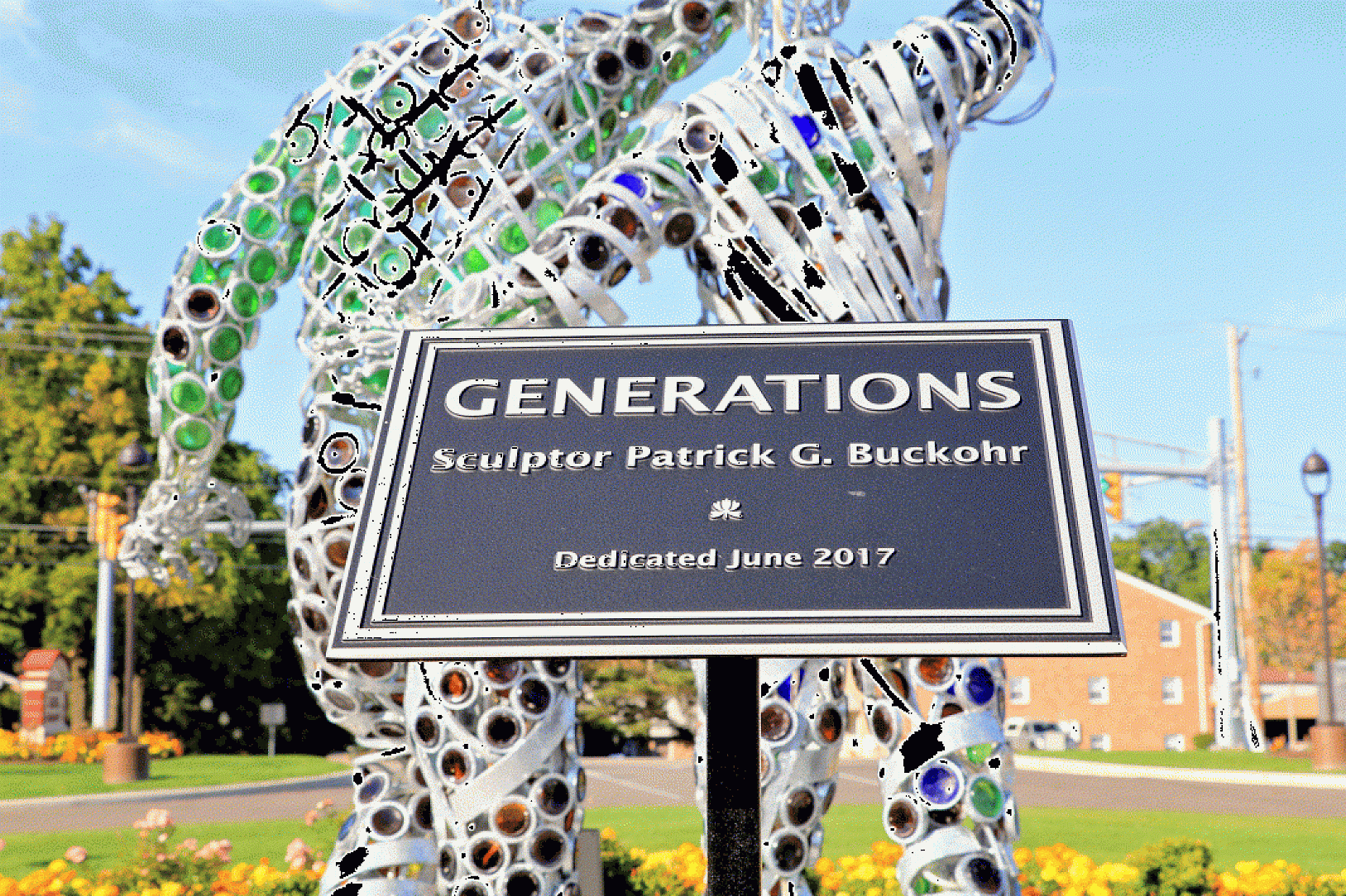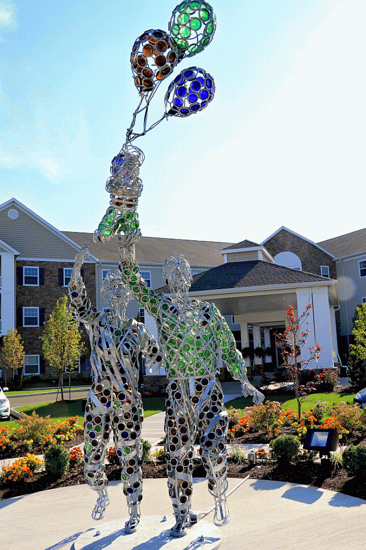 When the Sanctuary Grande was being designed, the developer Bill Lemmon of Lemmon Development was looking for something other than a fountain to sit out front. Debbie Hajba, Marketing Coordinator for Danbury Senior Living, who owns Sanctuary Grande, said, We were looking for a unique piece of art that would convey the idea of what a senior living facility means to the community. So, after a statewide search of proposals from more than a dozen artists, Patrick Buckohrs Generations was selected.