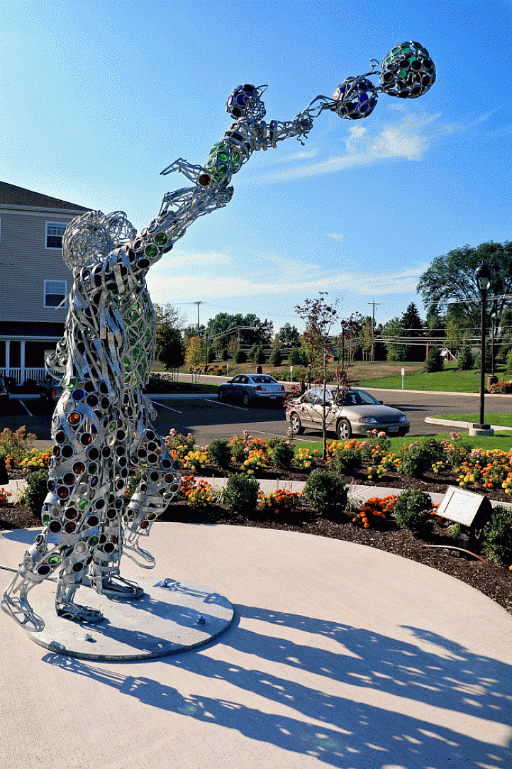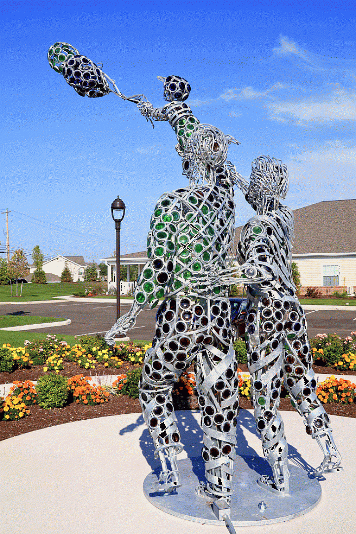 Buckohrs beautiful sculpture connects meaningful images of time; past, present, and future. Standing strong and tall in front of the beautiful new Sanctuary Grande facility in North Canton, Ohio, the sculpture welcomes visitors of all ages. Buckor's visionary sculpture was built to weather the challenges of time, and hot-dip galvanizings superior corrosion protection ensures his work will be enjoyed for generations.