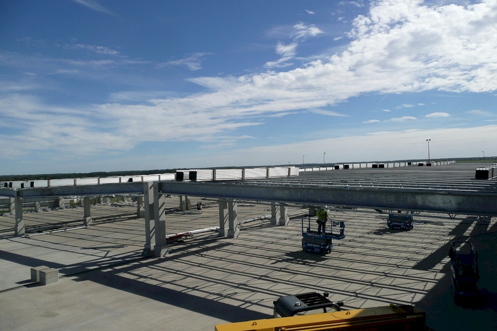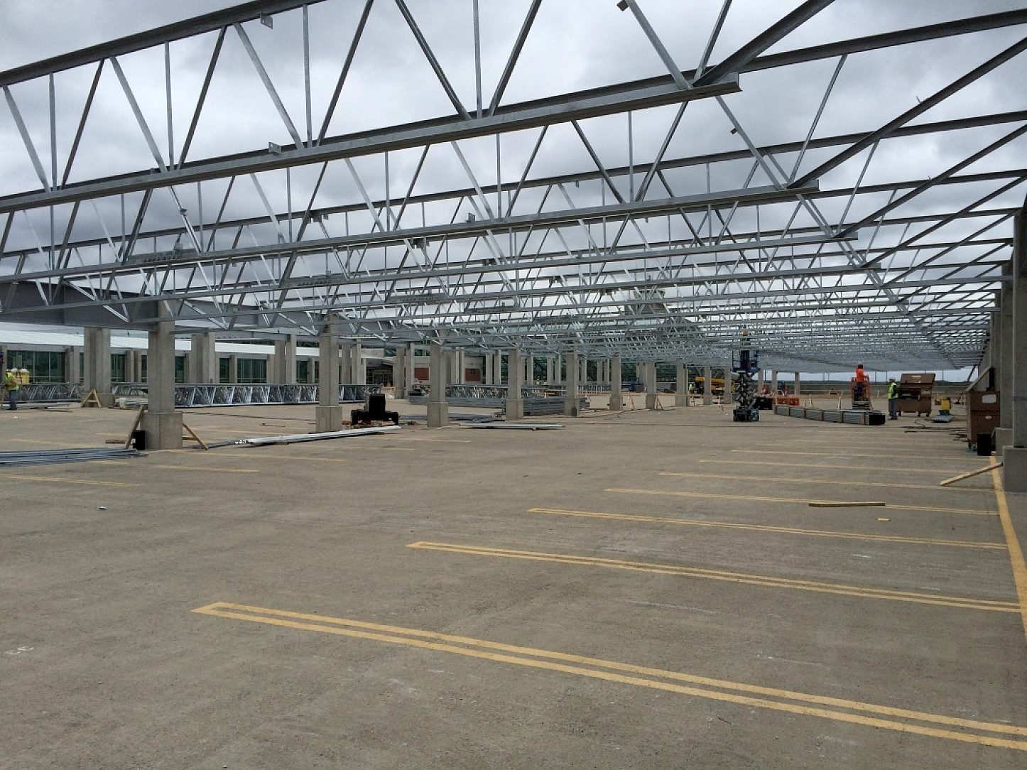 Carl Walker Parking Consultants of Kalamazoo, Michigan was receptive to a seminar several years ago concerning galvanizing vs weathering steel. Kent County Department of Aeronautics, has had experience with the 588 weathering material and has been quite satisfied with other projects that had been Galvanized. This led to the decision to completely Hot-Dip Galvanize the parking structure renovation and additions. Part of this project represented over 60 truckloads of spliced Joist. The largest project of its kind that, the Vulcraft Company reports, has ever been done.