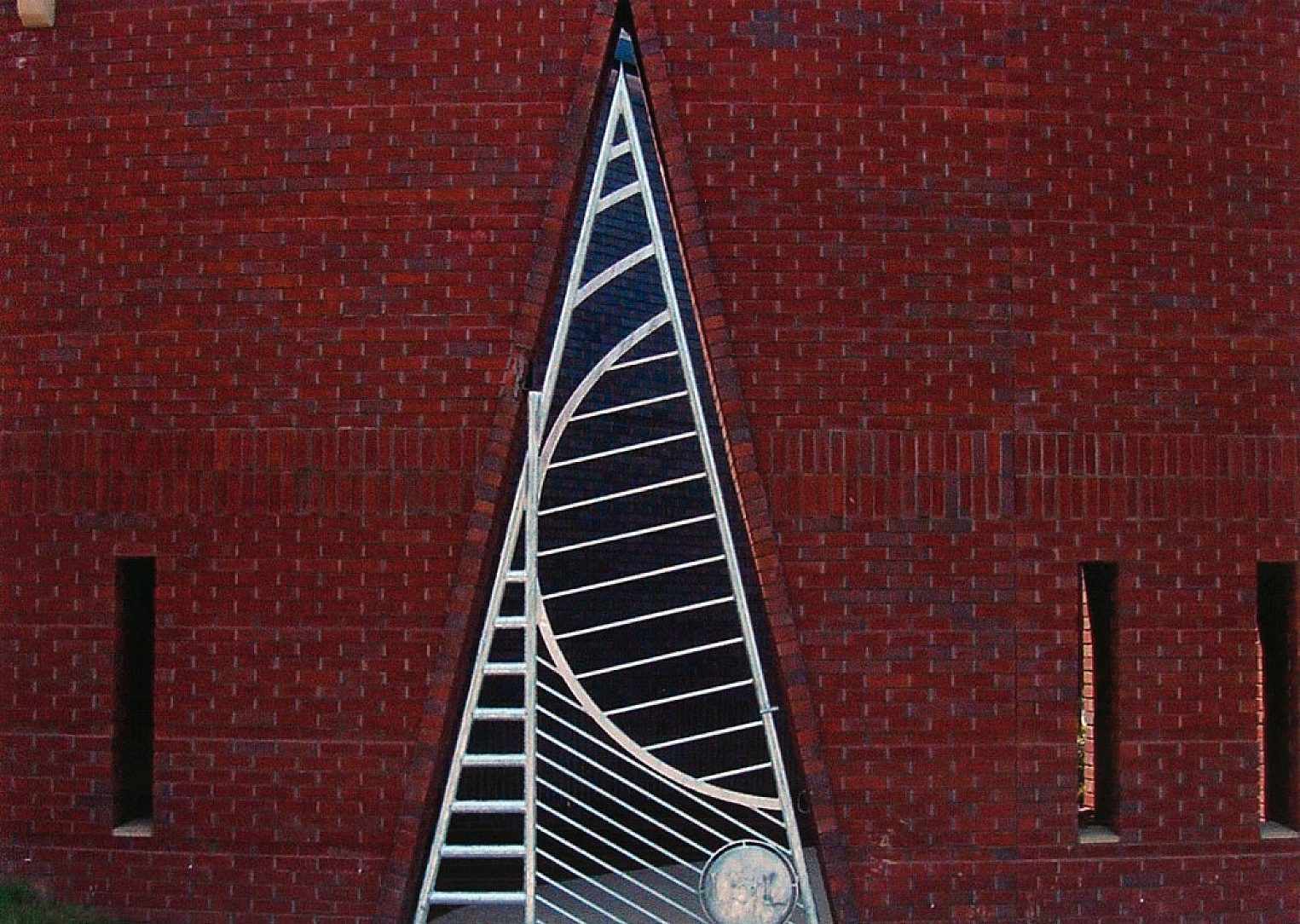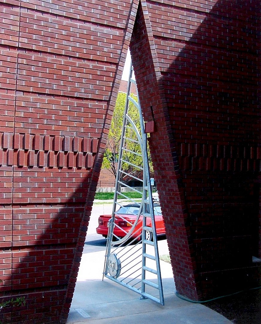 The Gheens Planetarium gate is a unique triangle shape, comprised of artistically designed galvanized steel rods and arcs. The curved arch in the gate mimics a planet, adding interest to the sharp corners of the triangular gate. Galvanized steel will protect this gate from its constant exposure to the outdoor elements, including rain, snow, wind, and sun, and potentially corrosive de-icing salts in the winter time. The attractive, matte-gray appearance looks very contemporary, and matches the aesthetics of the building. Galvanized steel will keep this gateway from rusting, and preserve it as an attractive entrance for visitors to the planetarium.