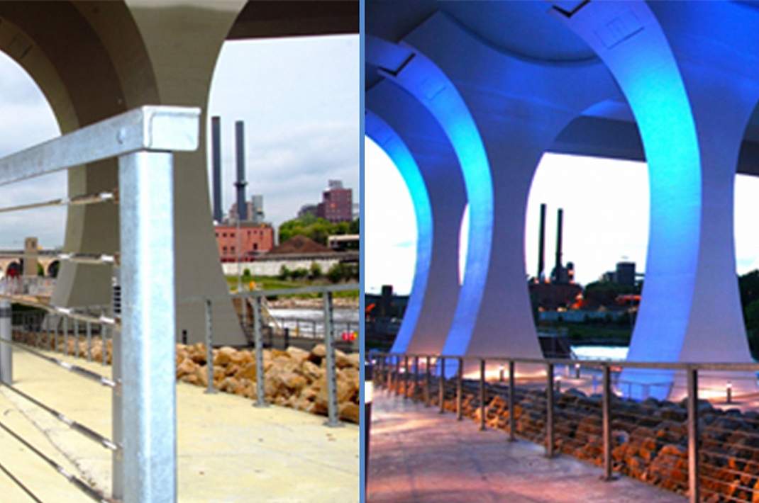Pedestrian bridge beams and cross members, handrail and downspouts for visitor's center.