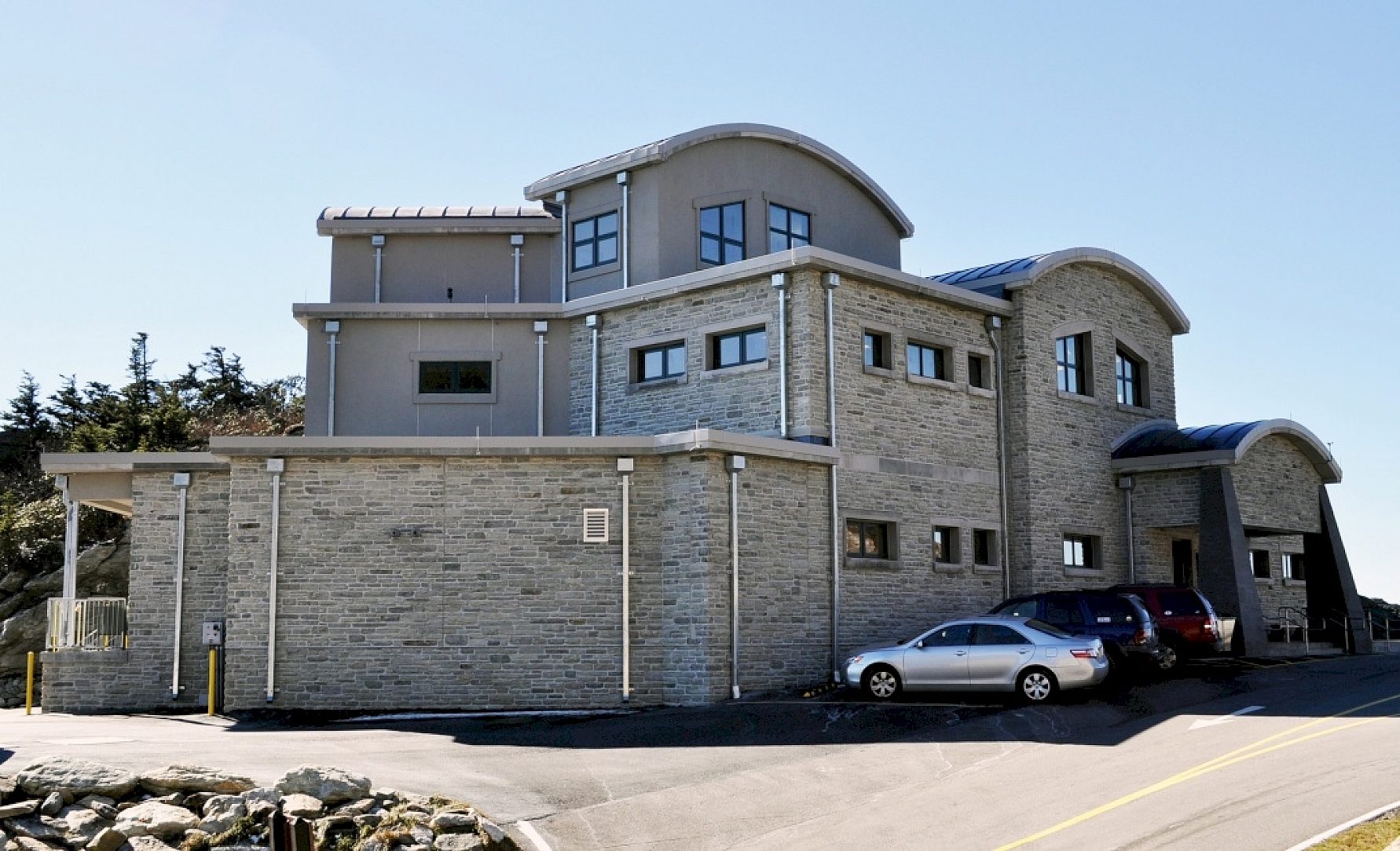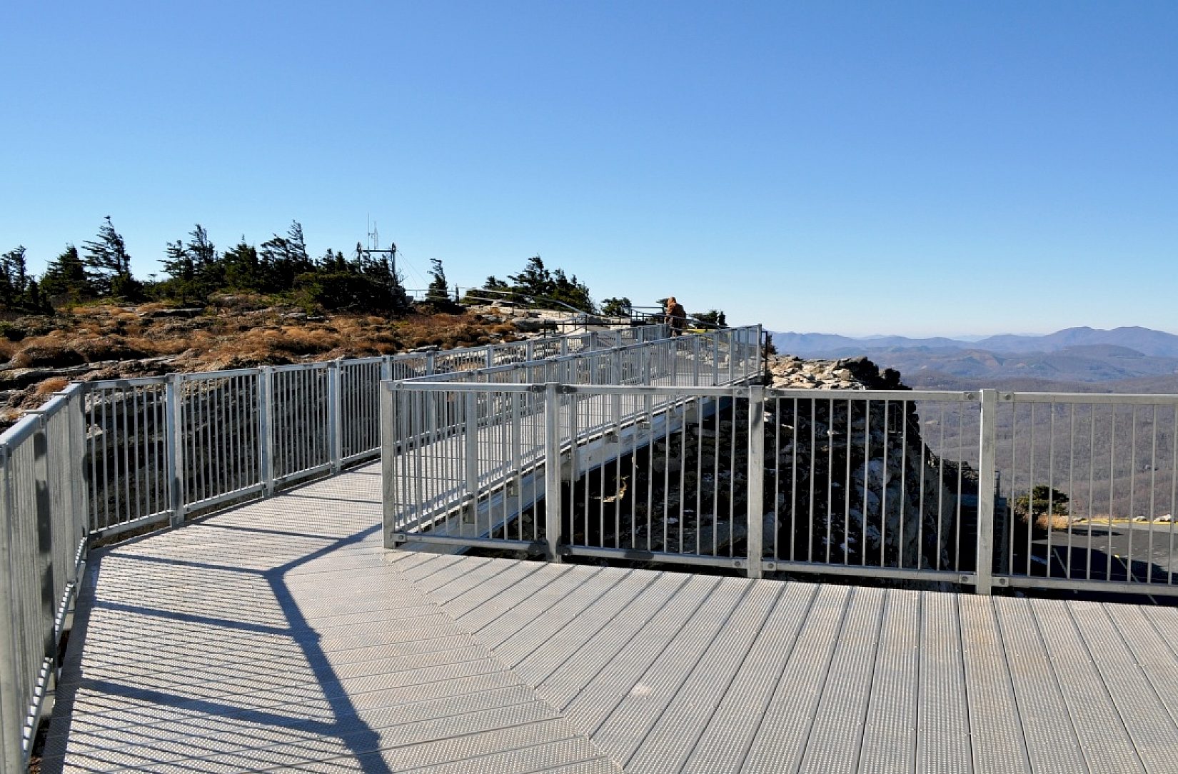 The new visitor center is built like a bunker in order to withstand these high wind speeds as well as the severe winter conditions experienced at the top of the mountain. The choice to galvanize all of the exposed metal on the new center was made due to the engineers prior experience with galvanizing the parts for the 228 foot long bridge located atop the mountain. Because of its lasting durability, galvanized steel will withstand even the toughest of weather, allowing this structure to provide decades of maintenance free performance while blending in with the existing structures.