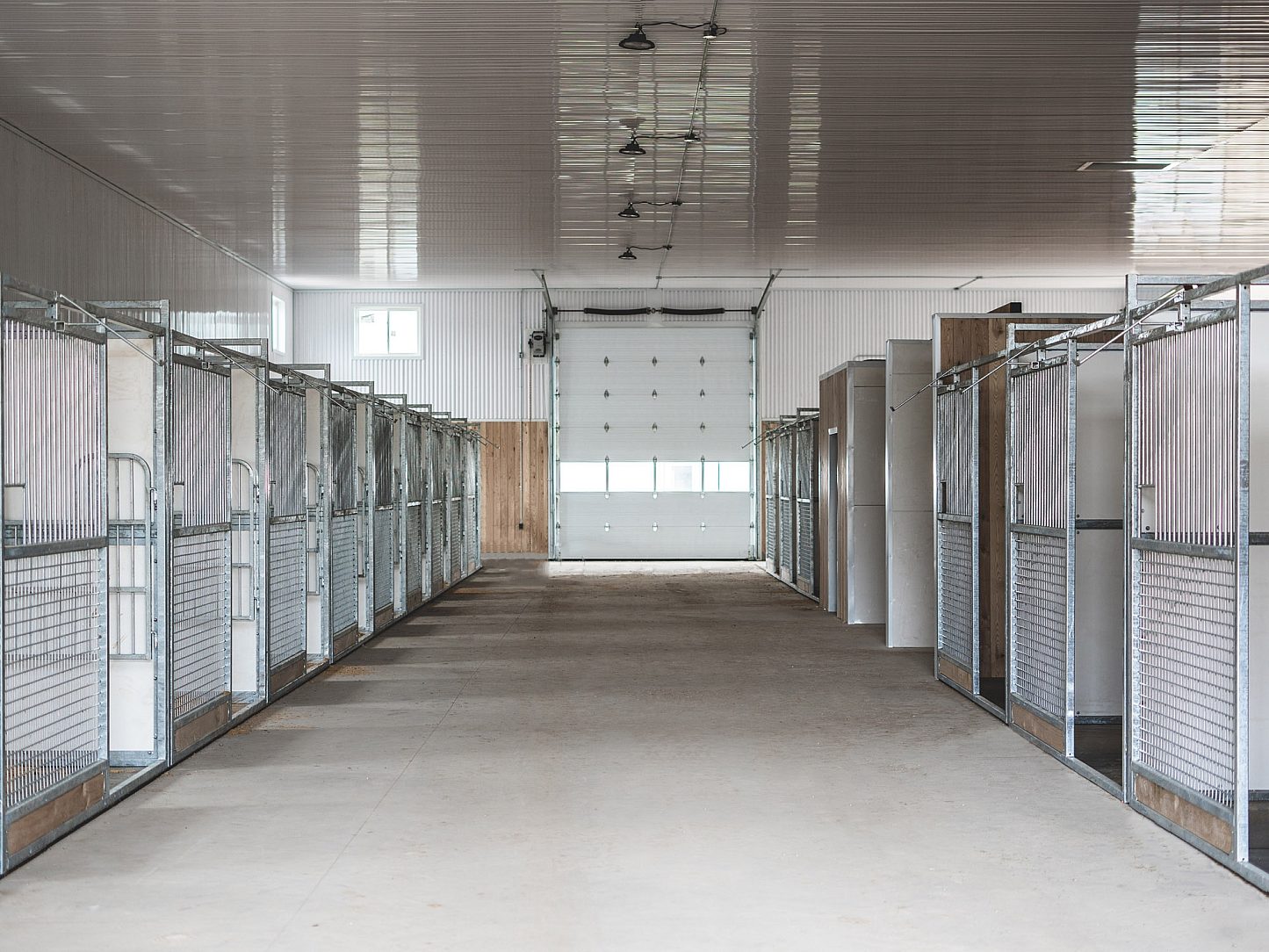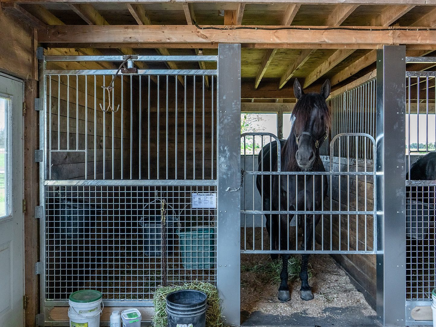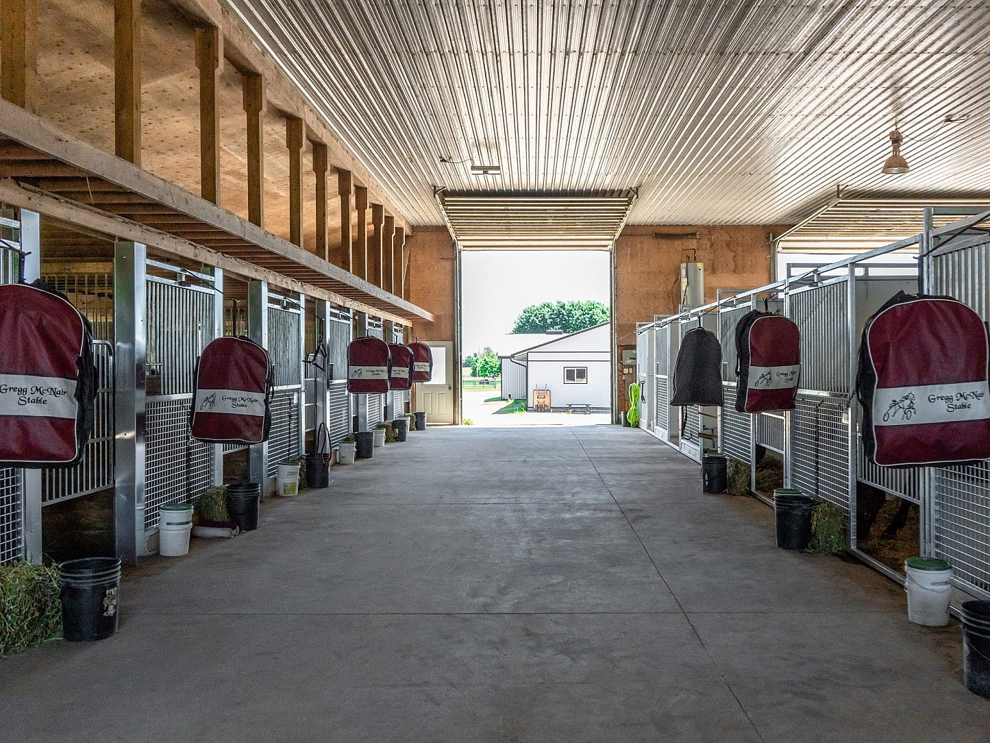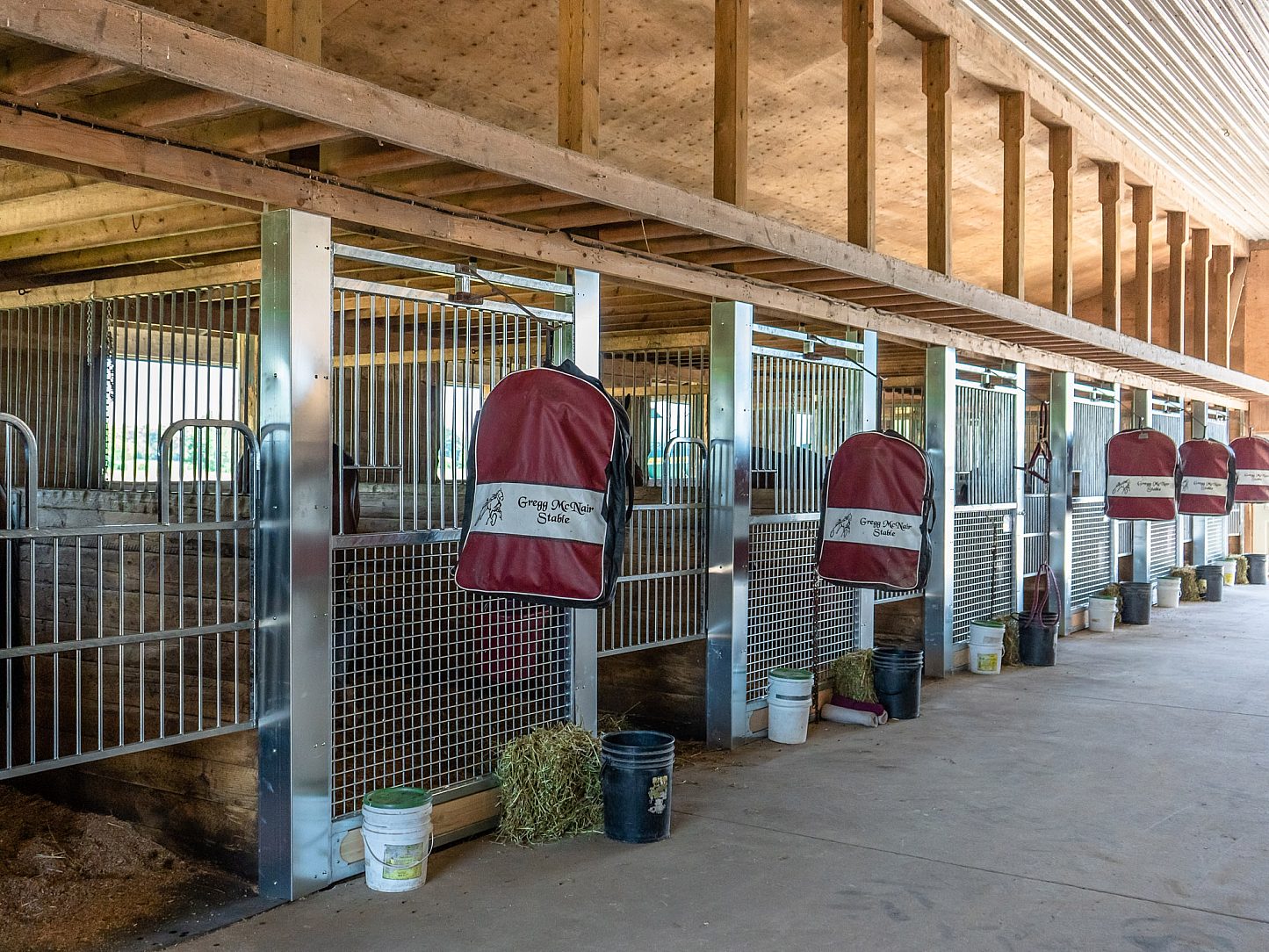 The purpose of the Gregg McNair Stable project was to create a secure, durable, and efficient environment for both horses and caretakers. Given the demanding nature of a Standardbred training facility, where daily cleaning and exposure to moisture are a constant, the decision to use hot-dip galvanized steel was crucial. Galvanizing was chosen for its corrosion resistance, which ensures the longevity of the barn’s infrastructure, reducing maintenance needs and repair costs. The galvanized horse stalls, combined with mesh-bottom stall fronts, create a functional space that promotes airflow, reduces waste buildup, and keeps the environment clean and comfortable for the horses.