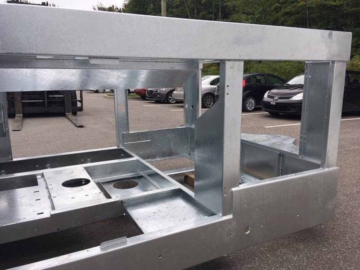 The Conditioned Air Unit is used to supply cooled and dehumidified air to aircraft cabins while the plane is on the tarmac or at the gate. This aggressive outdoor environment replete with jet exhaust, rain, snow, anti-slip abrasives and ice melting chemicals all conspire against the lifespan of the Unit. The air conditioning function of the Unit further creates corrosion with constant condensate runoff. Proper design of technical components is critical but the trailer frame structure itself was too large and heavy to economically justify the use of corrosion proof base materials. The amazingly low cost of steel to provide the structural support and impact protection for the mechanical equipment was compelling and the addition of hot-dip galvanizing addressed the only weakness of steel; corrosion.