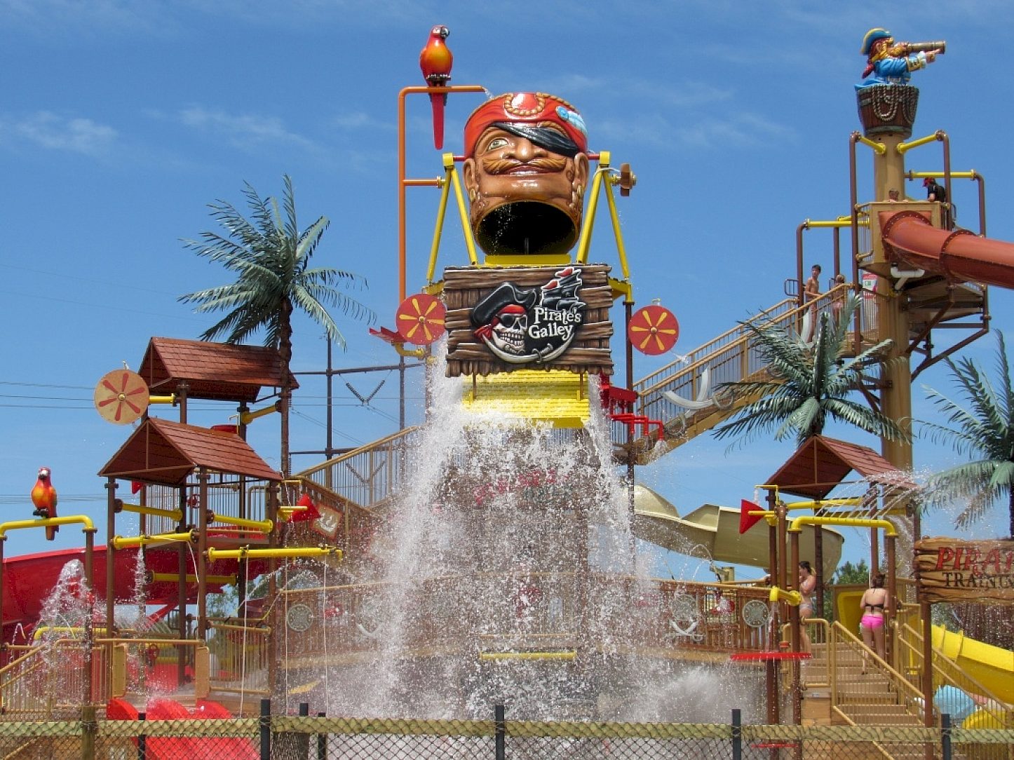 Many of the parks 30 attractions are first to market innovations including "Calico Jacks" a multi level pirate ship themed duplex coated play/slide structure which boasts a 300 gallon tipping bucket.