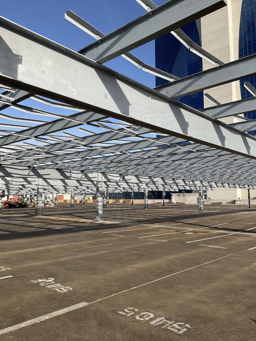 The parking garage near the casino created a great opportunity to design a solar canopy on the top floor. Caesars Entertainment, DSD Renewables, and Casino Redevelopment Authority of Atlantic City studied the impact on how this project will benefit Atlantic City and the local area. The main priority of the project was to provide sustainable energy for the casino but with that they needed a suitability coating program that will have longevity and low cost for years to come.