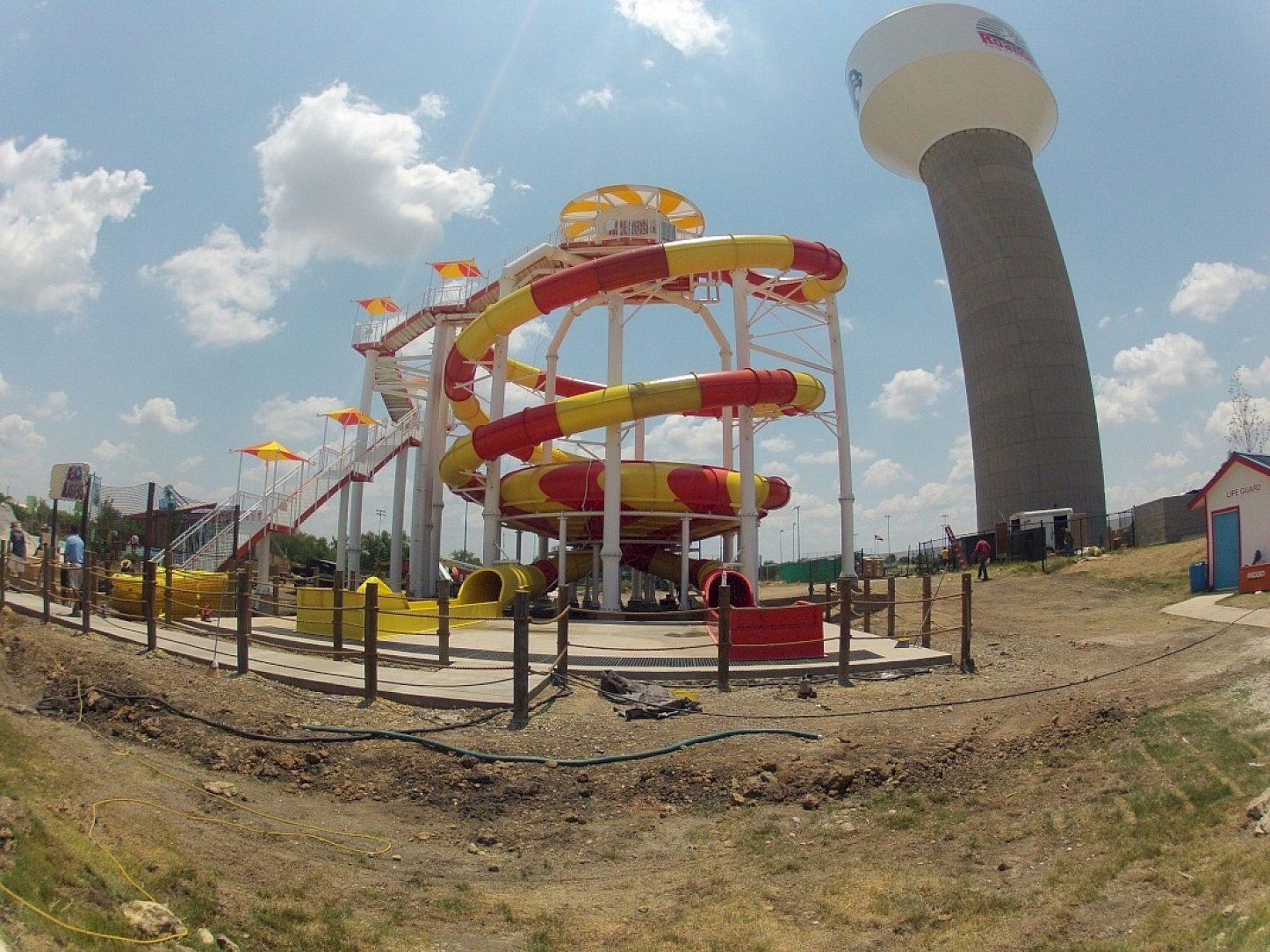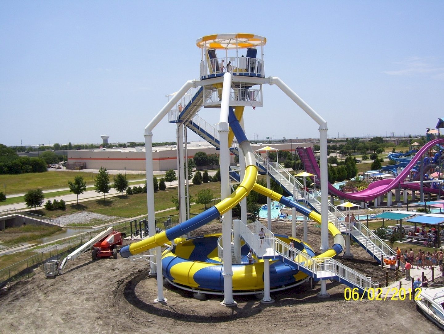 This project was unique as it was the first ever four person raft bowl slide where four riders all go down at the same time. This was for Hawaiian Falls Water Park in Texas. Continuous exposure to water flowing over the structure could result in corrosion on lesser coatings, but hot-dip galvanizing provides a long maintenance-free life. Splashtacular offers plain hot-dip galvanized structures and also offers duplex coatings with a painted or powder coated topcoat. Corrosion performance and appearance is improved if a duplex ststem is used, but galvanized steel is always the minimum offered.